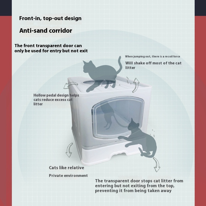 The No Plus-sized Fully Enclosed Folding Litter Box for Cats is designed to meet the diverse needs of pet owners in various environments. This litter box is particularly suitable for homes with multiple cats, small apartments, or even larger spaces that require efficient waste management. Its fully enclosed design minimizes odor and mess, making it ideal for indoor use.