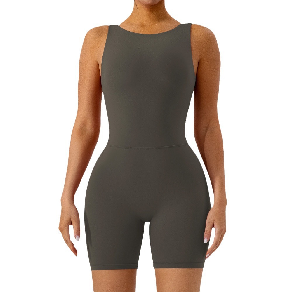 Nude Feel Hollow-Out Back Beauty Yoga Shorts Jumpsuit for Women