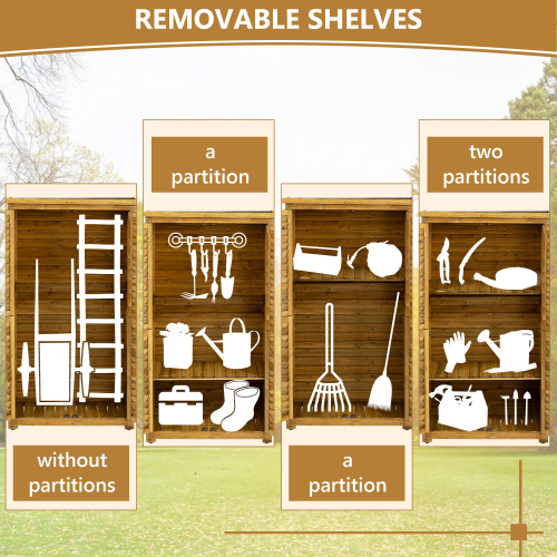 - Removable Shelves: Outdoor wooden storage cabinet comes with 2 removable shelves, providing 3 storage layers for all your gardening tools and equipment; Keep everything organized and easily accessible.