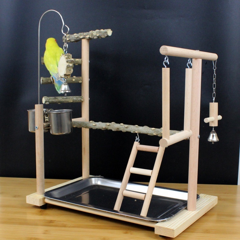 Parrot Toys Tiger Skin Peony Bird Stand – Xuanfeng Xiaotai Wooden Sub-Stand Pole for Pepper Birds