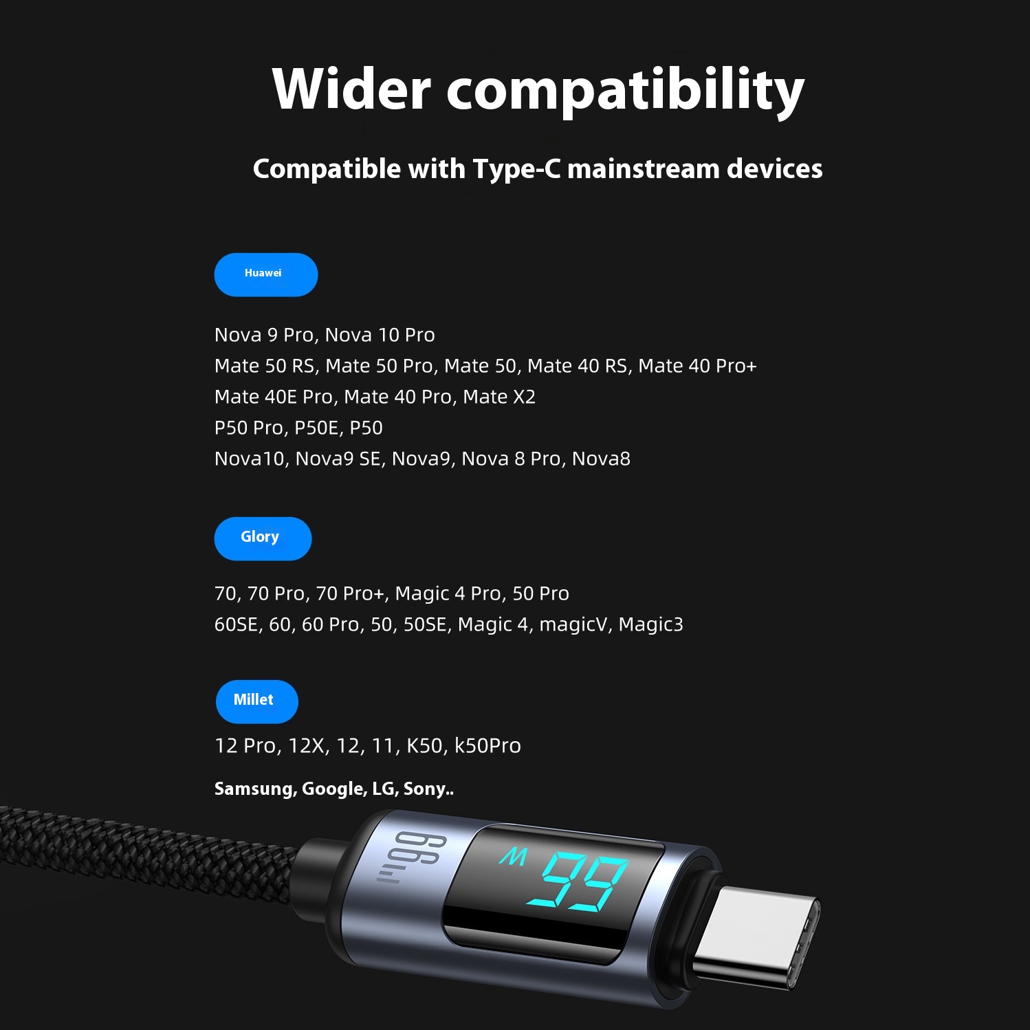 One of the standout features of the PD20 66W Fast Charge Data Cable is its impressive charging speed. Capable of delivering up to 66W of power, this cable significantly reduces charging times compared to standard cables, making it an advantageous choice for those who require quick power-ups in their busy lives. The aluminum alloy construction coupled with nylon woven design enhances its durability, ensuring that the cable withstands daily wear and tear while maintaining its performance. Customers will appreciate the cable’s robust build and reliable functionality. Additionally, the digital display feature on the cable provides real-time information about charging status, enabling users to monitor their devices’ power levels effortlessly. This combination of speed, durability, and innovative design sets the PD20 cable apart from alternatives on the market, making it a top choice for consumers who prioritize quality and efficiency.