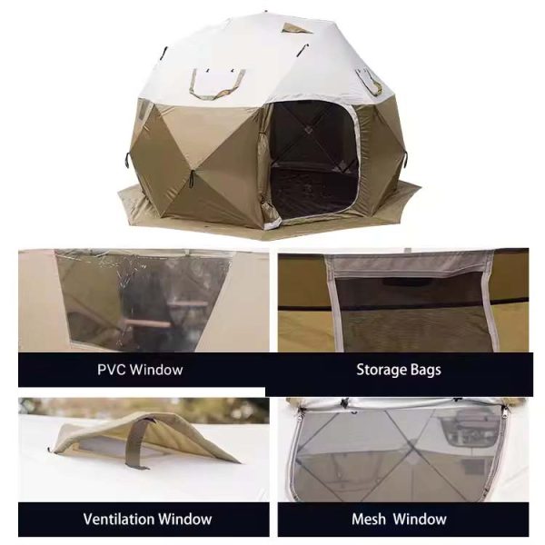 The customizable nature of the tent, including the option for personal logos and colors, makes it suitable for both personal use and promotional activities for businesses in outdoor recreation industries. Whether you’re a recreational angler or a professional guide, this dome tent caters to all, providing the comfort and shelter needed to tackle the cold winter elements.