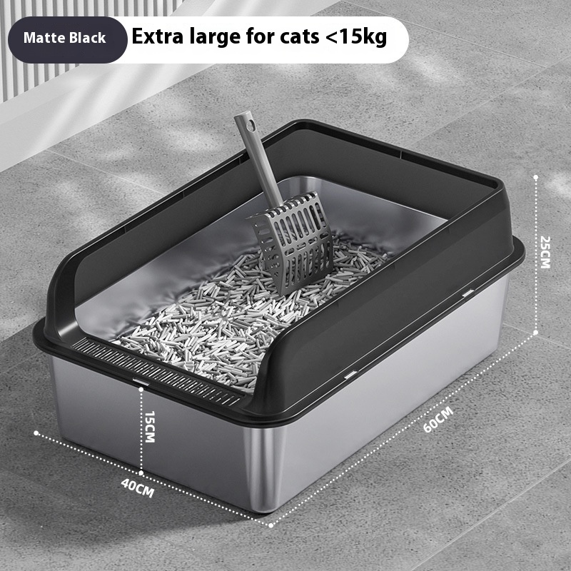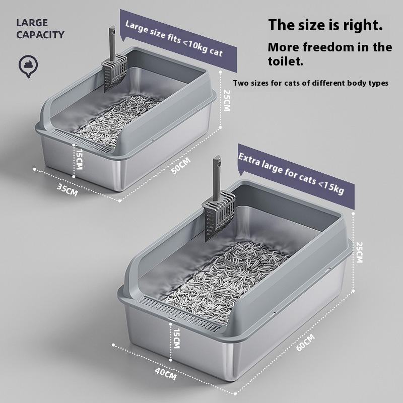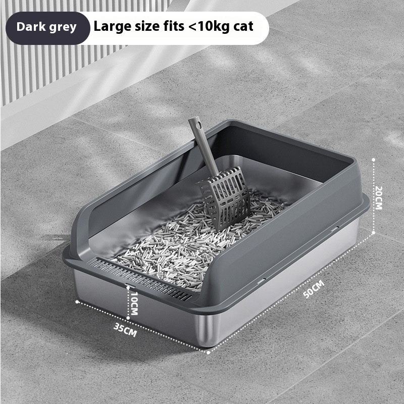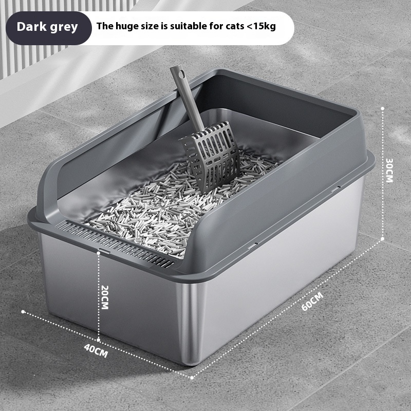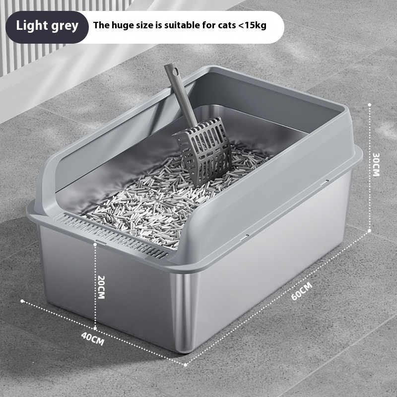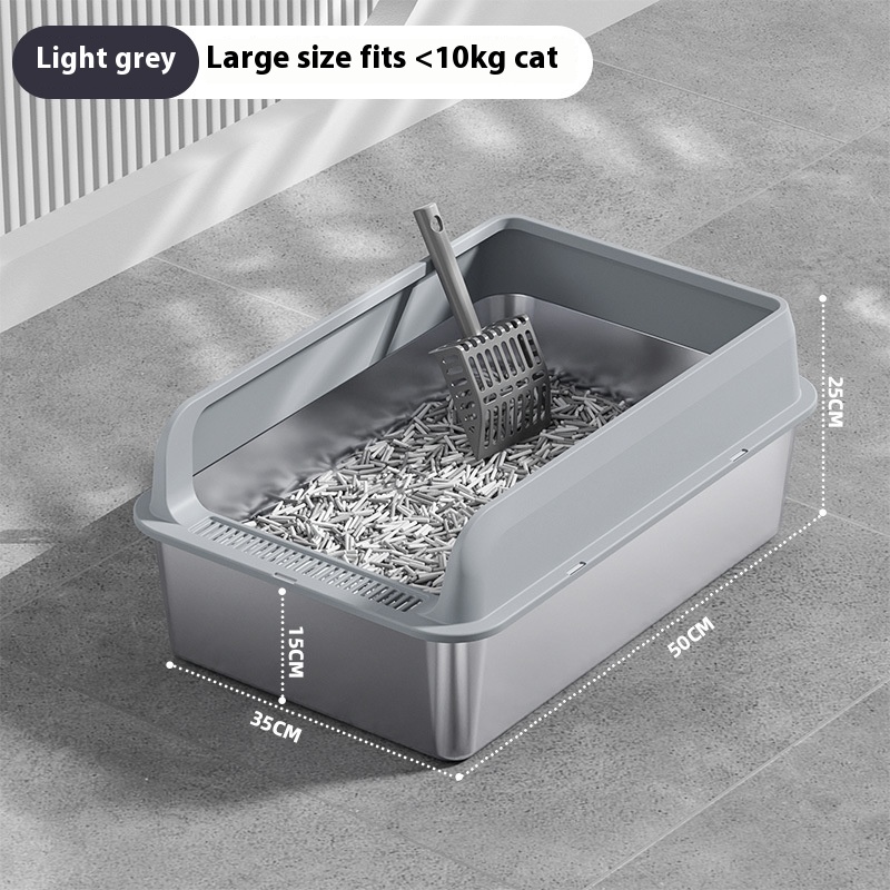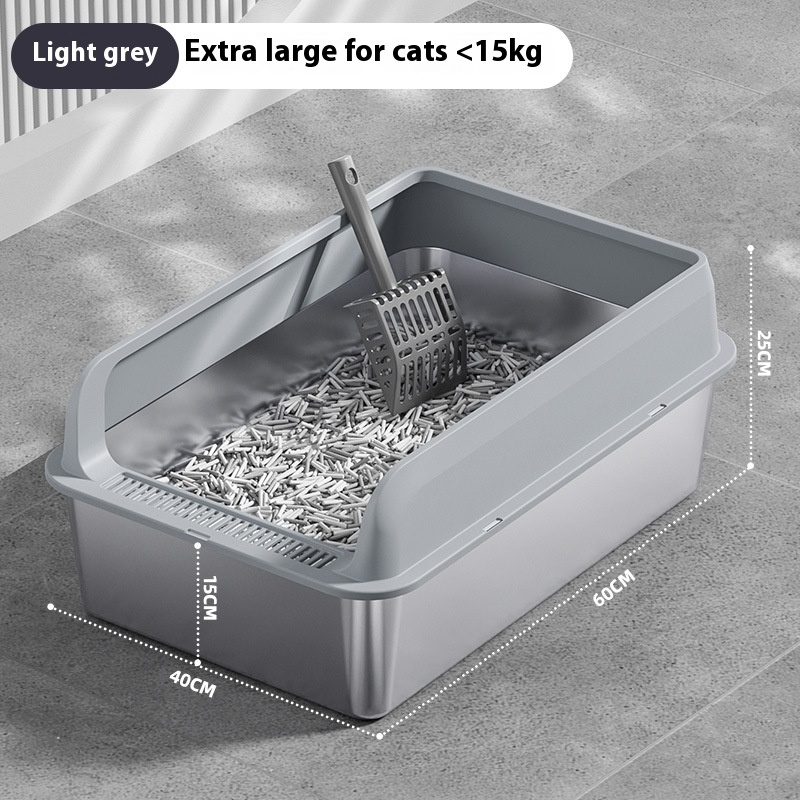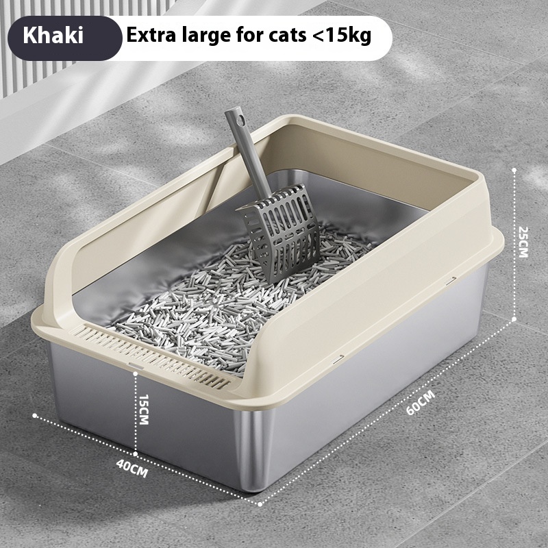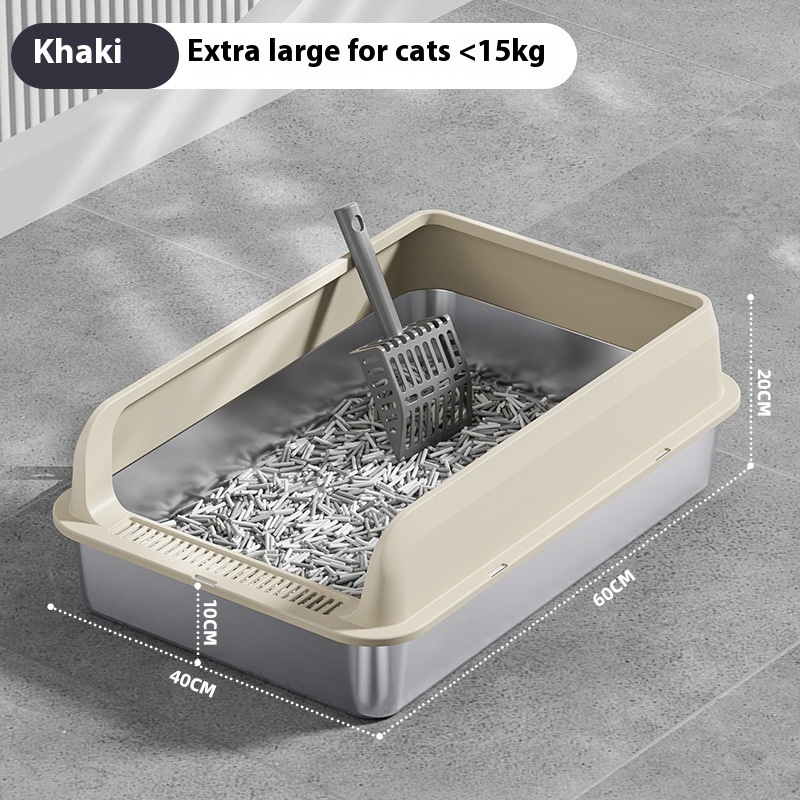 The Premium Stainless Steel Cat Litter Box is a practical and versatile solution for pet owners seeking an efficient and sanitary way to manage their cat’s waste. This litter box can be utilized in various settings, from homes to veterinary clinics and grooming salons, making it an essential item for any cat-friendly environment. Its design accommodates a range of cat sizes and breeds, ensuring that every feline has a comfortable space to do their business. Whether you have a single pet or multiple cats, this litter box is adaptable to your needs. The oversized options available in multiple colors, including light gray, dark gray, black, and khaki, make it easy to integrate into any décor, providing both functionality and aesthetic appeal. Ideal for both indoor and outdoor use, the Premium Stainless Steel Cat Litter Box is perfect for discerning pet owners who prioritize cleanliness and convenience.
