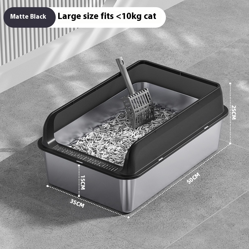 One of the standout advantages of this Premium Stainless Steel Cat Litter Box is its durability and ease of maintenance. Unlike traditional plastic litter boxes that can absorb odors and stains over time, the stainless steel construction offers a non-porous surface that resists bacteria and odors, ensuring a more hygienic environment for your pet. The smooth surface allows for easy cleaning, making it simple to maintain a fresh and tidy space. Additionally, the inclusion of a cat litter spoon and a non-slip mat enhances the overall user experience by providing essential tools for daily maintenance. The product’s competitive advantage lies in its premium materials and thoughtful design, which cater to the practical needs of cat owners, setting it apart from less robust alternatives on the market. By choosing this litter box, customers invest in a long-lasting solution that simplifies cat care.