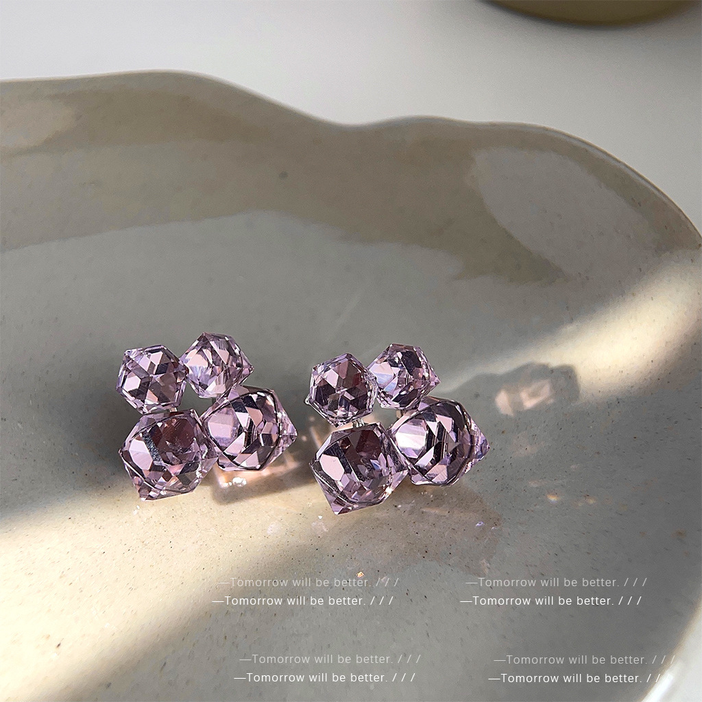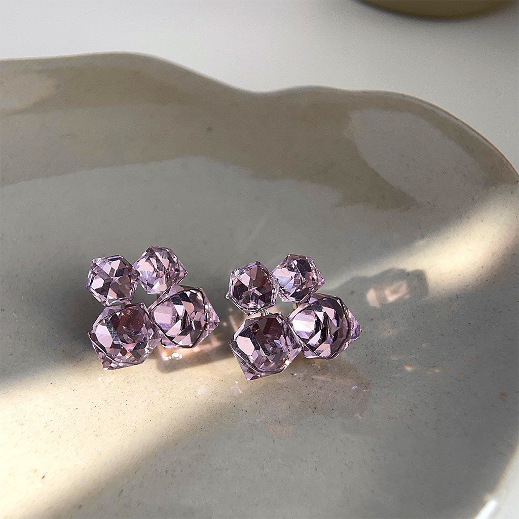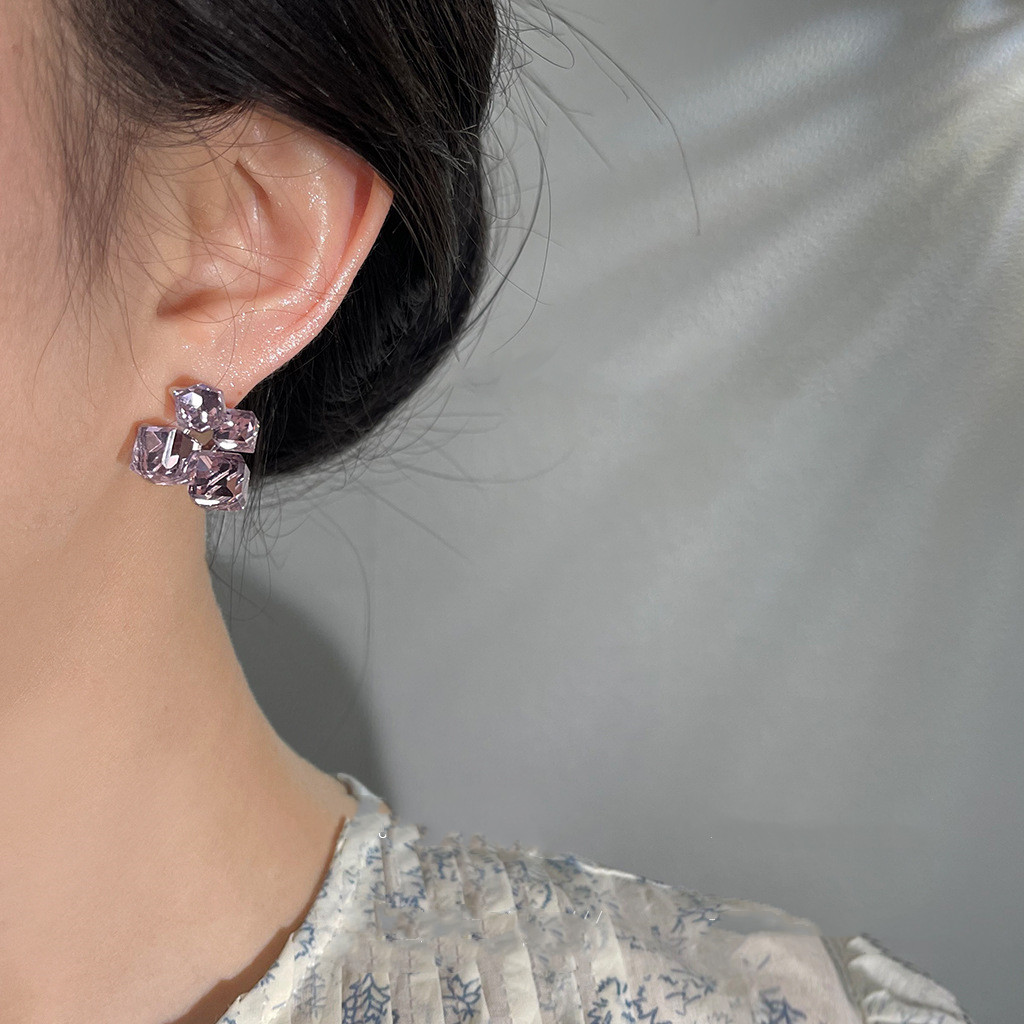 Quality is paramount when it comes to jewelry, and the Purple Glass Crystal Geometry Pattern Cube Sugar Stud Earrings are no exception. Made from premium glass crystal, these earrings exhibit exceptional craftsmanship, ensuring that each piece is durable and reliable. The meticulous attention to detail in their construction reflects a commitment to quality that discerning customers will appreciate. With a total length of approximately 1.6cm and a diameter of 1.4cm, these earrings have been designed to provide a comfortable fit while still making a bold statement. The materials used not only guarantee a stunning appearance but also contribute to the earrings’ longevity, making them a wise investment for anyone looking to enhance their accessory collection.
