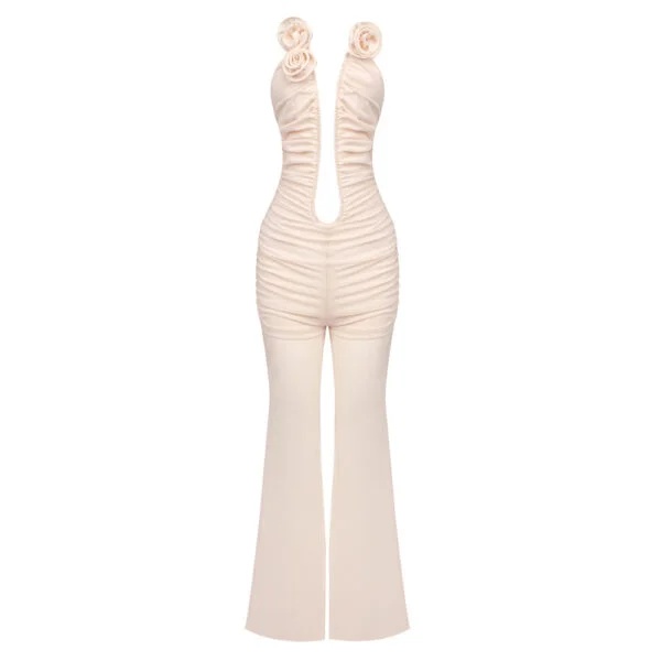 With its unique backless design, this jumpsuit offers a touch of elegance that is ideal for private events or socialite gatherings. Available in sizes XS to L, it caters to a range of body types, ensuring that every woman can find her perfect fit. The bootcut trousers style adds a fashionable flair, making it suitable for both formal and informal settings.