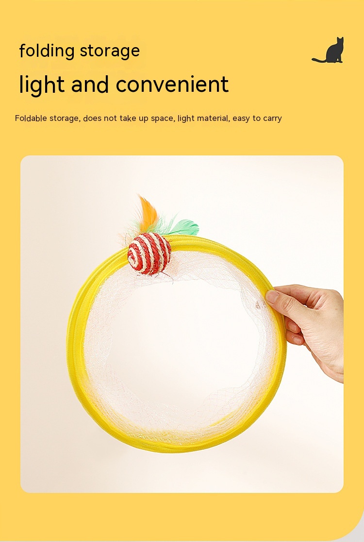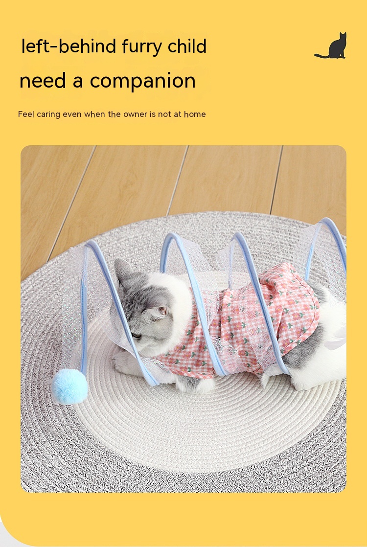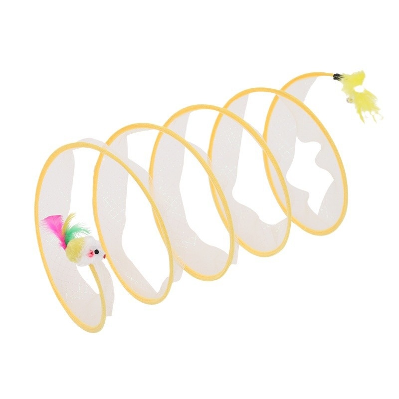 The S-Type Folded Cat Tunnel is an engaging and interactive spring toy designed specifically for kittens, offering a unique play experience that can be enjoyed both indoors and outdoors. This versatile toy features a collapsible design that allows cats to easily navigate through its tunnel, embodying their natural instincts to explore and burrow. With enticing elements such as mice and feathers located at both ends, this tunnel not only serves as a passageway but also as a stimulating teasing stick that encourages active play.