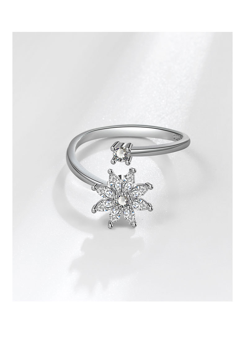 The ring’s geometric shape and floral elements reflect a contemporary aesthetic, making it a stylish choice for those who appreciate modern jewelry. Additionally, the electroplating treatment ensures that the ring maintains its luster over time, resisting tarnish and wear. This combination of beauty and practicality makes the S925 Silver Snowflake Spinner Ring a standout option for those seeking elegance and functionality in their jewelry pieces.