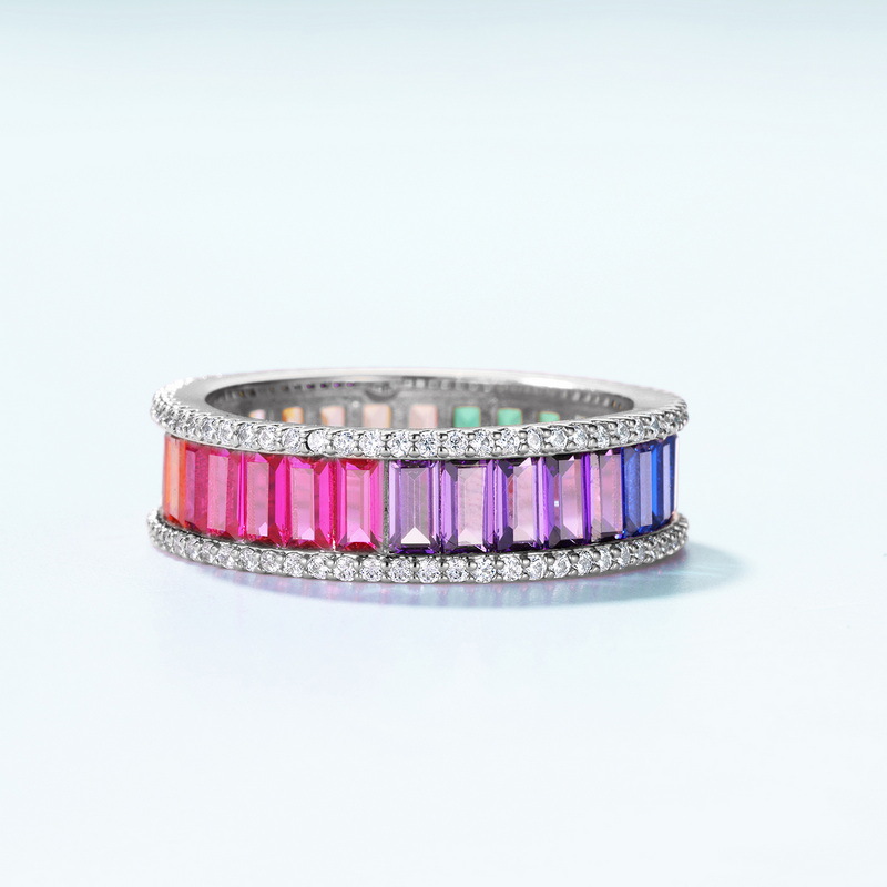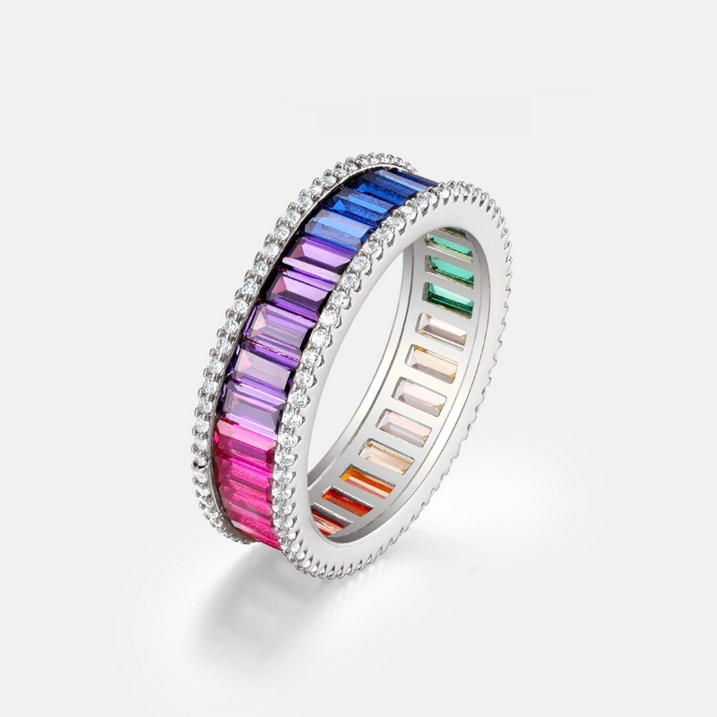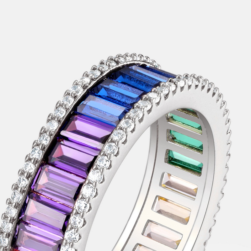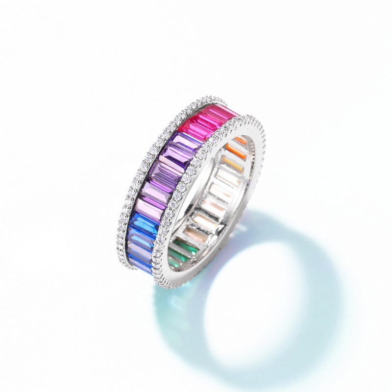 S925 Single Row Inlaid Colored Gems Ring for Men and Women – Stylish Jewelry