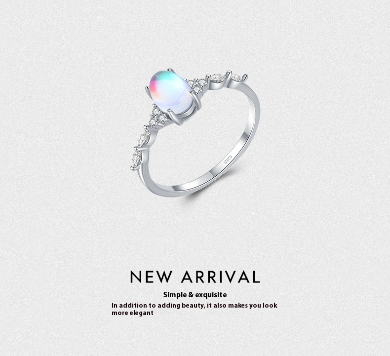 S925 Sterling Silver Ins Cold Style Moonstone Ring – Elegant Fashion Accessory