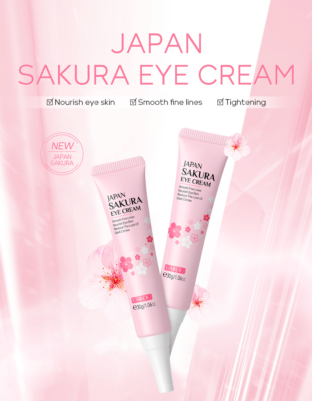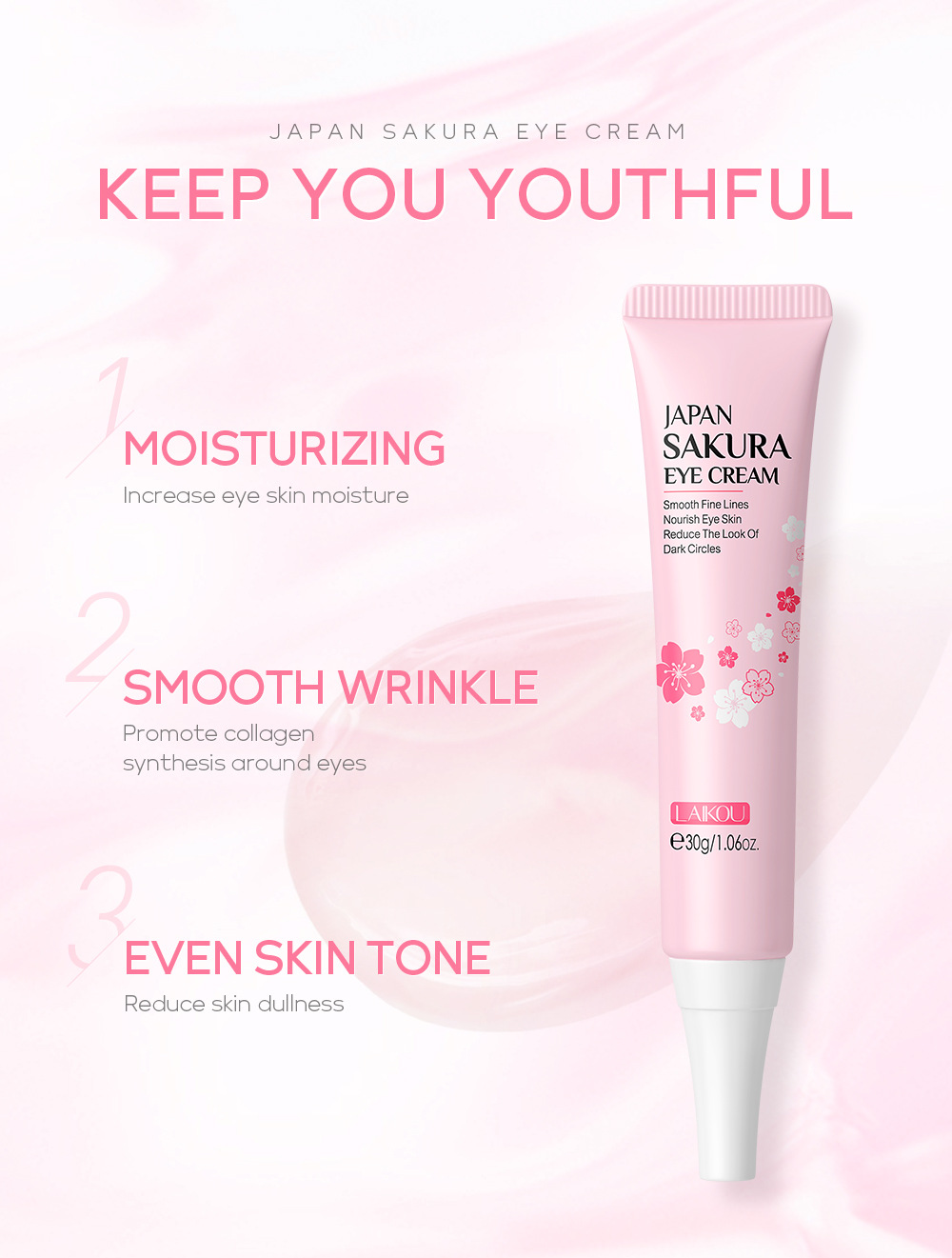 Sakura Eye Cream is designed to cater to a wide array of application scenarios, making it an essential addition to anyone’s skincare regimen. This deeply moisturizing treatment is ideal for individuals seeking relief from dryness and fatigue around the delicate eye area. Whether you are a working professional who spends long hours in front of screens, a traveler exposed to changing climates, or simply someone looking to enhance their daily skincare routine, this eye cream serves a versatile purpose. Its universal applicability makes it suitable for all skin types, allowing it to be seamlessly integrated into various environments, from corporate offices to busy households. Furthermore, its compact and convenient packaging, sized at 150*30*30 mm, enables easy portability, ensuring that you can maintain radiant eyes wherever life takes you.