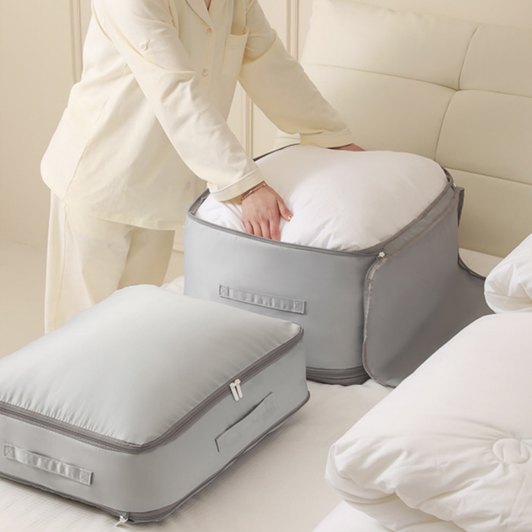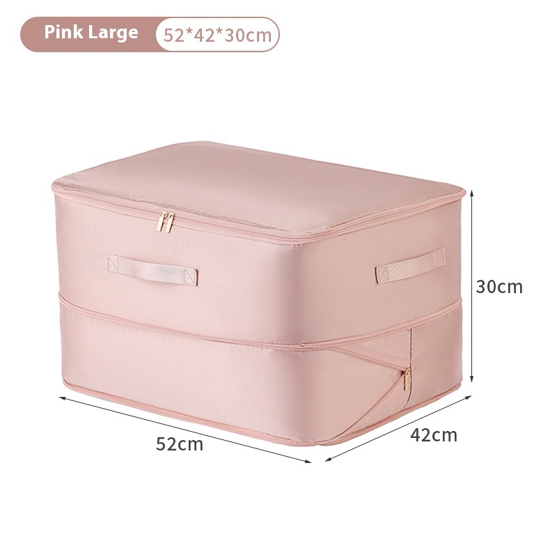 The Satin Compression Quilt Bag is designed to offer a versatile and practical storage solution for a variety of items, making it an ideal choice for both personal and professional use. This multi-functional dustproof storage bag can accommodate a wide range of products, including underwear, cosmetics, bras, quilts, sundries, clothing, and even dirty laundry. Its adaptability makes it suitable for various contexts, from home organization to travel needs. In domestic settings, it can help keep closets tidy and free from dust, while in travel scenarios, it provides a compact way to store and protect clothing and other essentials. Additionally, industries such as hospitality and retail can benefit from this bag for organizing merchandise or guest amenities, further demonstrating its broad application range.