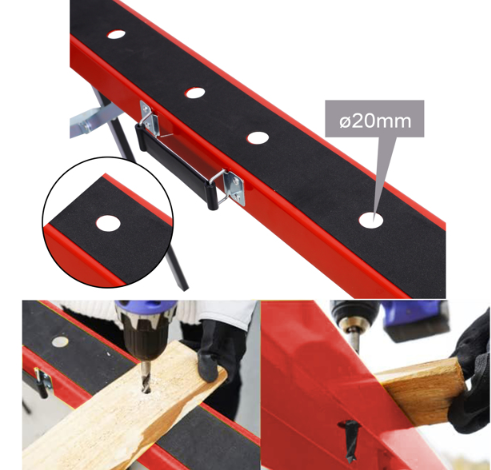 The sawhorses can also be employed in construction sites, home improvement projects, and even in outdoor settings for tasks that require a reliable support system. Each sawhorse is equipped with a 0.8-inch (20 mm) diameter hole in the top board, allowing users to drill additional holes as needed, further enhancing their functionality. With the ability to support a large load capacity, these frames cater to both professional and amateur users, proving to be an invaluable resource across various industries.