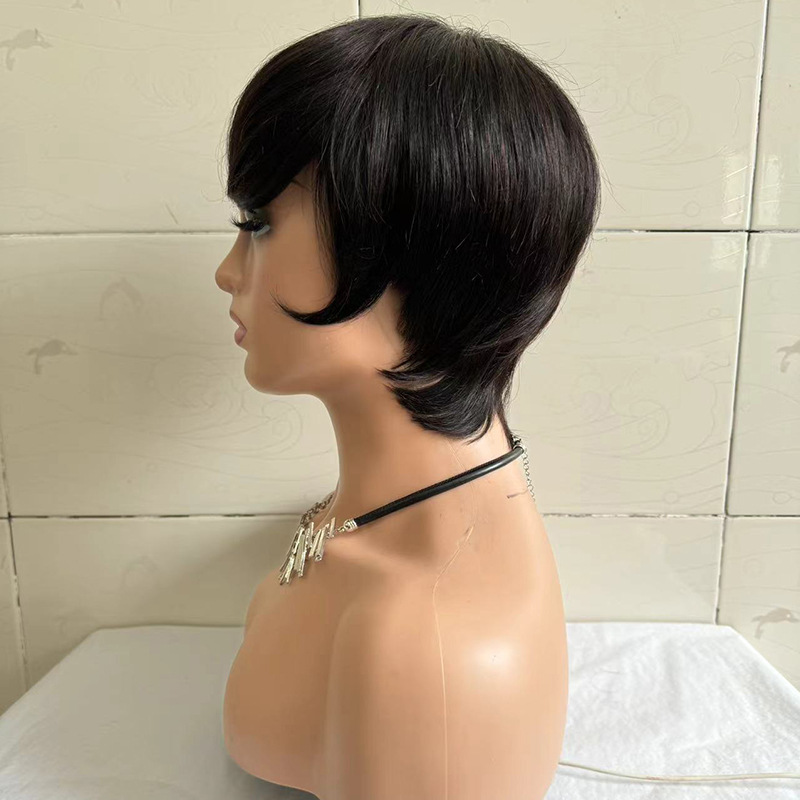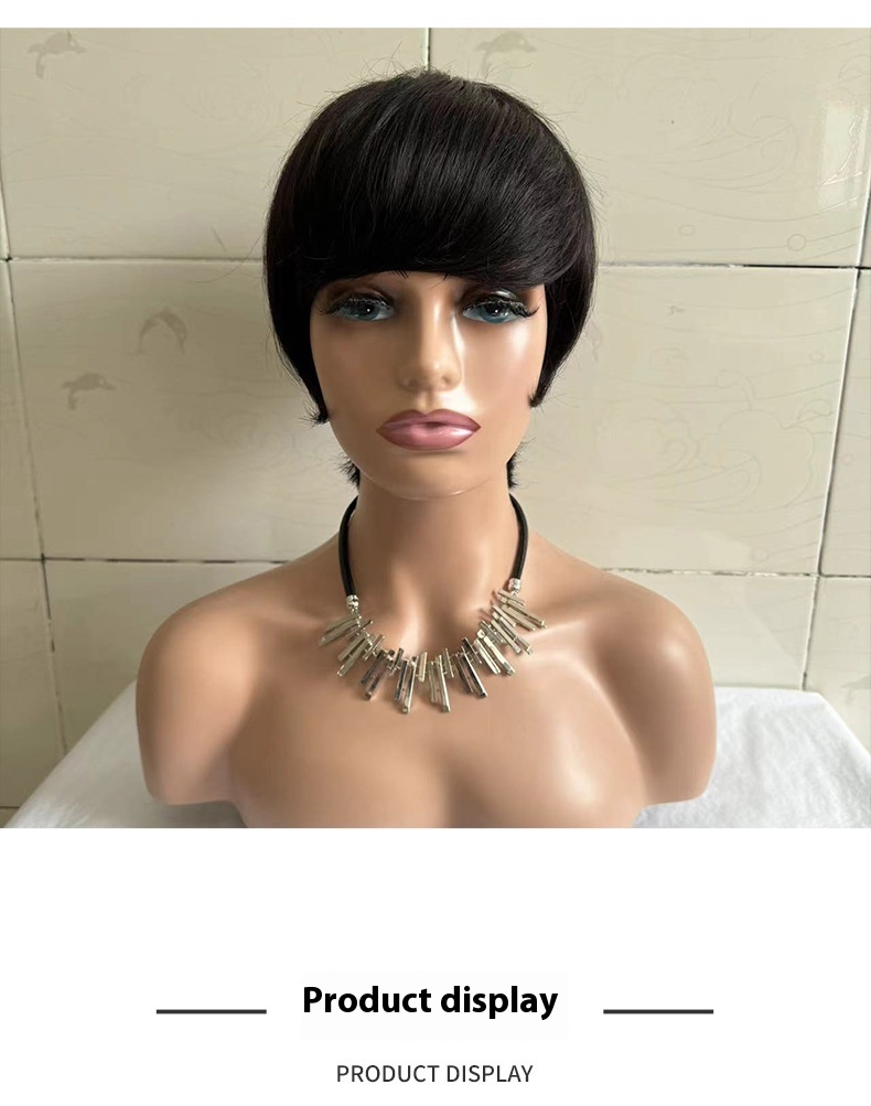 Introducing the Short Straight Wig for Women, crafted from real human hair, this product is designed to meet the diverse styling needs of women across various contexts. Its versatile application range makes it suitable for everyday wear, special occasions, or even professional settings. Whether you are looking to refresh your everyday look, trying out a new style for a party, or need a reliable head cover for medical reasons, this wig fits seamlessly into your lifestyle. Its natural color complements any skin tone, and its flattering short straight style with side bangs enhances facial features, making it an ideal choice for anyone seeking a chic and modern appearance. The adaptability of this wig allows it to be worn by individuals of any face shape and skin color, ensuring that it meets the needs of a broad spectrum of customers.