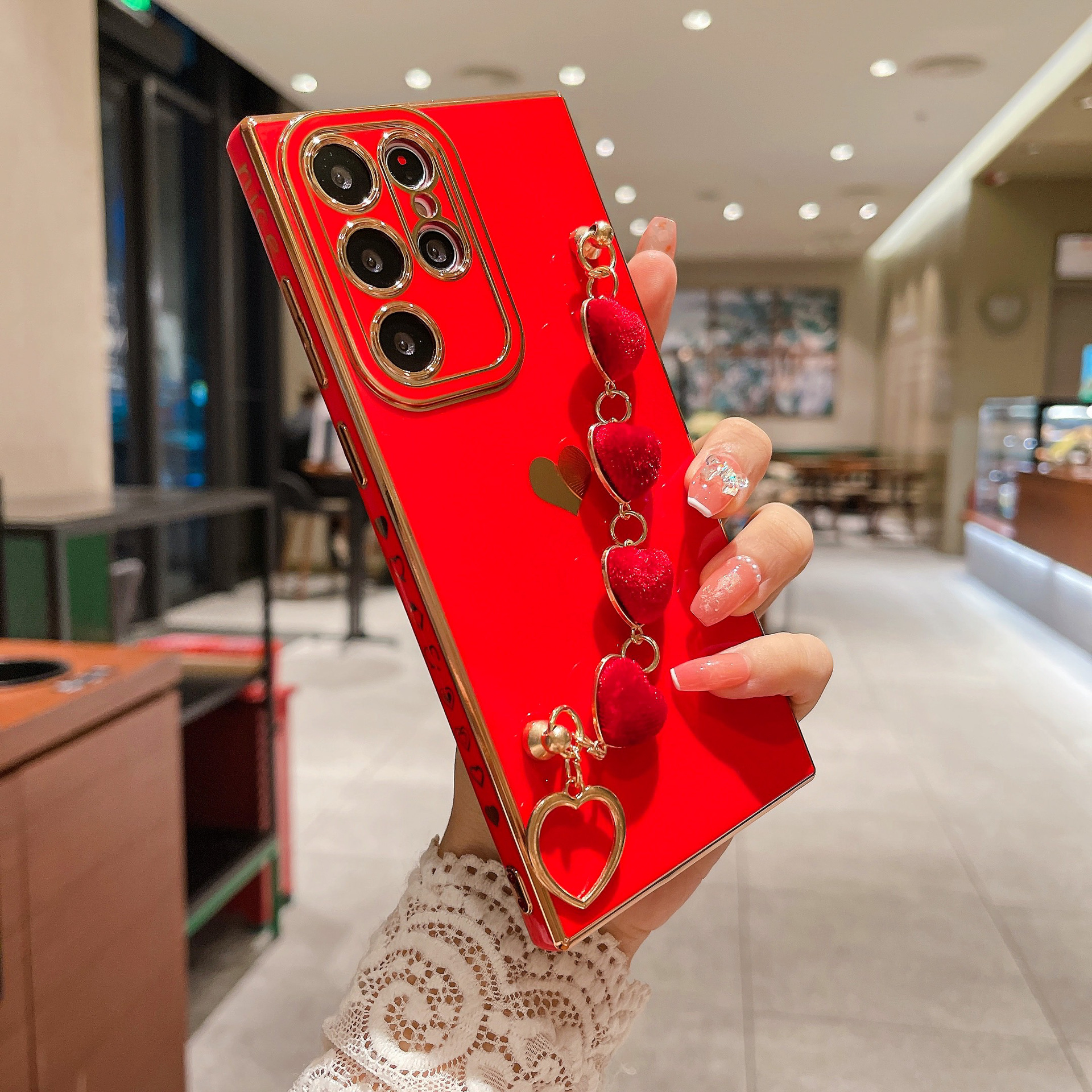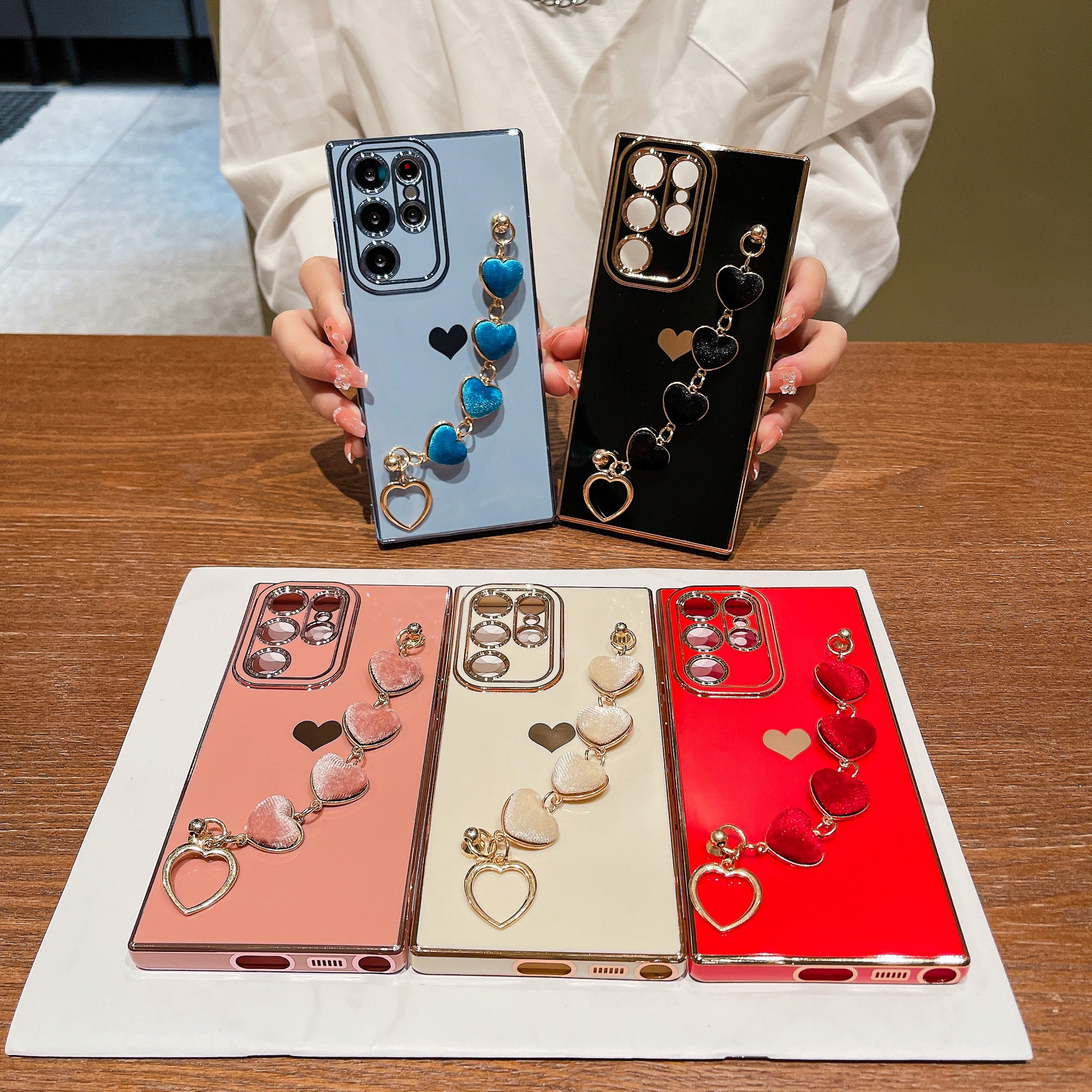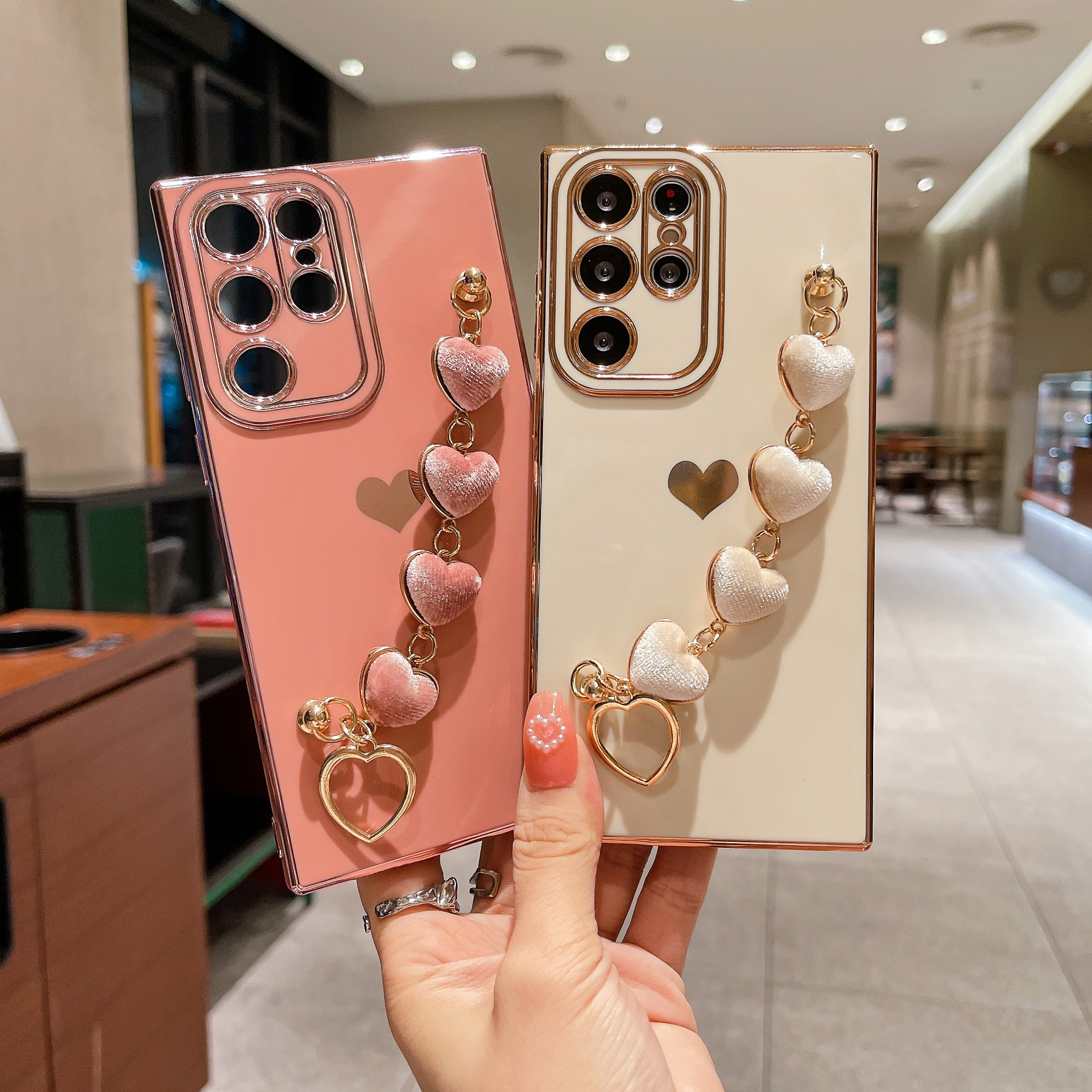 The Side Electroplated Love Plush Heart Bracelet serves as a stylish and protective accessory for smartphones, particularly compatible with Samsung models. This product is designed to cater to a variety of application scenarios, making it an ideal choice for everyday use. Whether in a bustling urban environment, during outdoor activities, or simply while lounging at home, this bracelet case offers an effective solution for maintaining the integrity of your device. Its versatility extends beyond just Samsung products, as it is also compatible with non-Samsung brands, allowing users across different platforms to benefit from its protective features. The playful and fashionable design, featuring heart motifs and an elegant chain style, appeals to a wide range of audiences, including fashion enthusiasts and tech-savvy individuals, ensuring that it meets diverse aesthetic preferences.