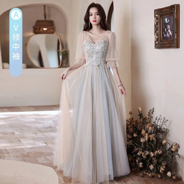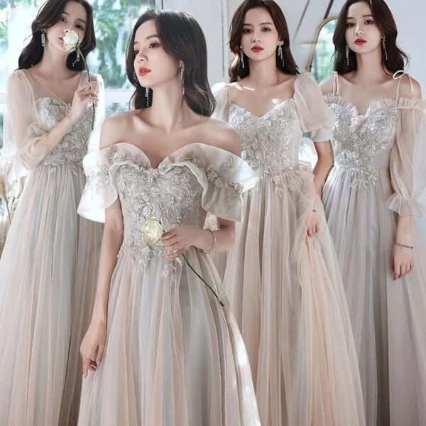 The Sisters Group Banquet Slimming Dresses are designed specifically for weddings and special occasions, making them an ideal choice for bridesmaids and those seeking flattering styles for plump figures. These dresses come in various styles, including mid-length V-neck half sleeves and long square collar puff sleeves, allowing for versatility in styling. The diverse range of designs, from off-shoulder options to tie mid-sleeve styles, caters to different preferences and body types.