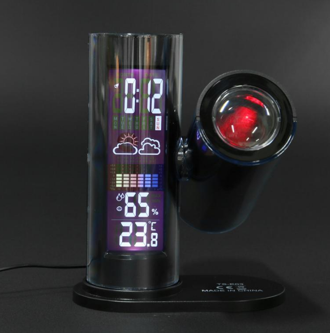 The clock features an LCD screen that displays not only the current time but also temperature and humidity readings, making it a practical tool for monitoring indoor conditions. With its colorful LED backlit display, visibility remains clear even in dimly lit areas, making it a perfect bedside companion. Furthermore, the clock’s projection capability allows users to view the time projected onto a wall or ceiling, providing a unique and convenient way to check the time without needing to turn on the main light.
