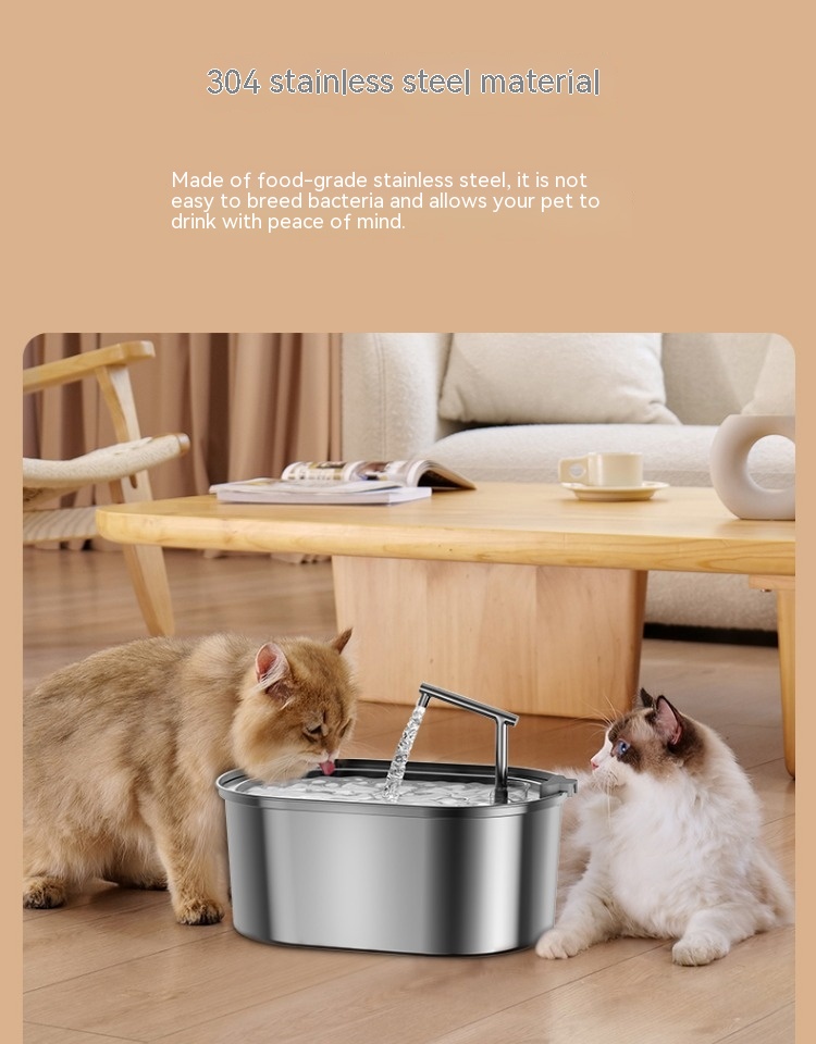 One of the standout advantages of the Stainless Steel Pet Water Feeder is its unique antibacterial water purification feature. This technology ensures that the water remains free from harmful bacteria and contaminants, which is essential for maintaining the health and well-being of pets. The use of 304 stainless steel as the primary material not only gives the feeder a sleek and modern appearance but also enhances its durability and resistance to rust and corrosion.
