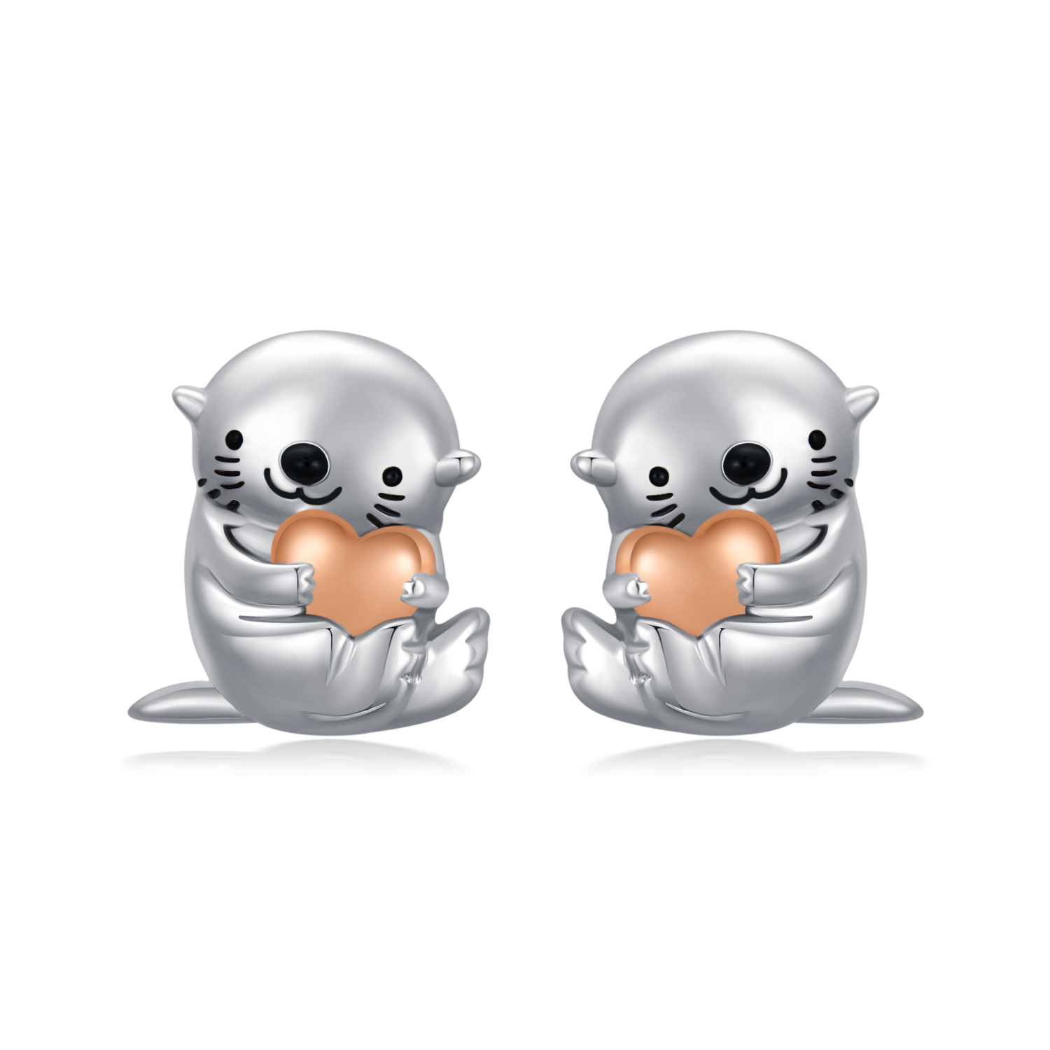 Sea Otter With Heart Earrings Sterling Silver Animal Stud Earrings Otter Earrings.