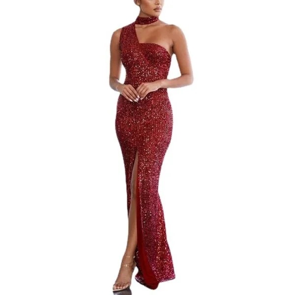 The Stunning Solid Color Sequined High Waist Dress with Chest-Wrap Design is a versatile and elegant piece that is perfect for a variety of occasions. This dress is designed to impress, making it ideal for formal events, parties, and festive gatherings. Whether you are attending a wedding, a gala, or a night out on the town, this dress will ensure you stand out with its striking sequined finish.