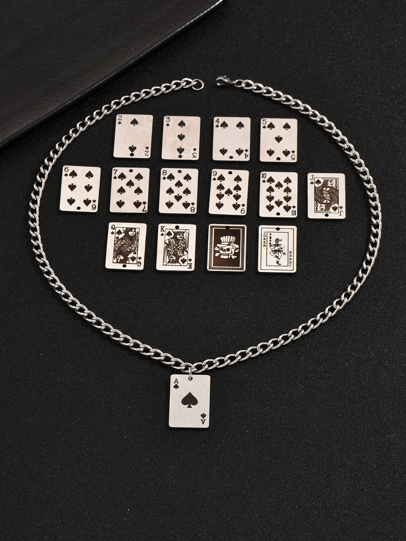 Moreover, the playful poker motif—incorporating elements such as spades, skulls, and clowns—infuses a sense of creativity and fun. This necklace is not just an accessory; it is a bold statement piece that reflects individuality and taste. Customers are encouraged to choose this product over alternatives for its unique combination of artistic flair and durability, ensuring they make a statement with confidence.