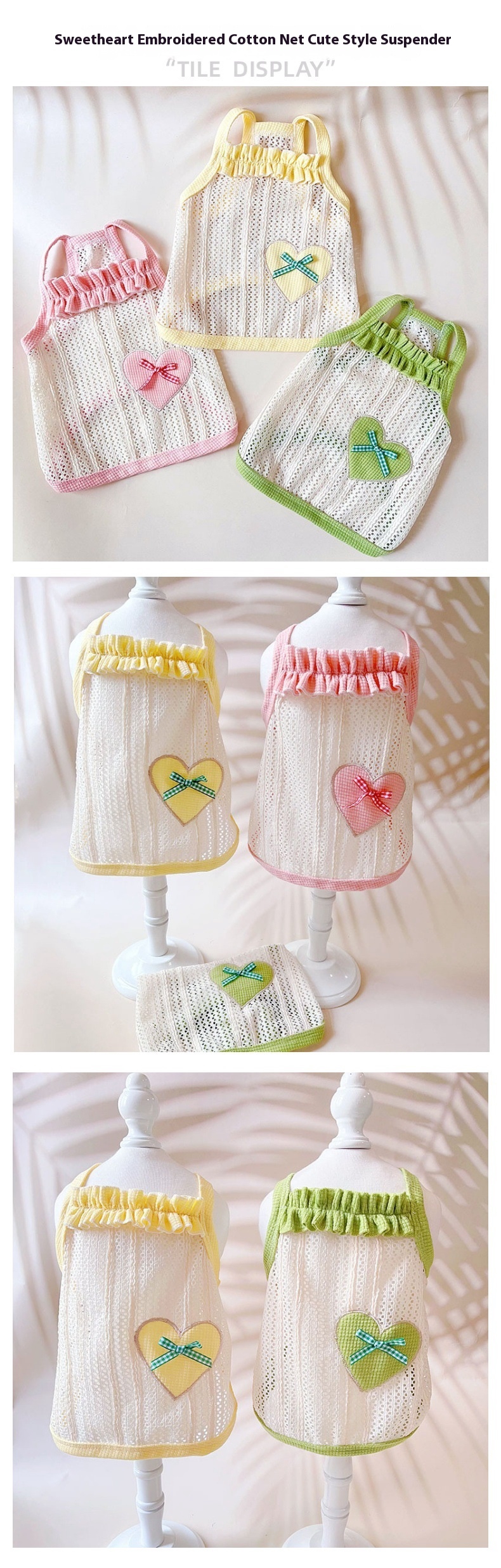 One of the standout features of the Stylish Breathable Sweetheart Embroidered Vest is its unique design, which combines cute style with practicality. The vest is crafted from high-quality trueran material, which is known for its breathability and comfort, allowing your pet to move freely without overheating. The vest’s appealing colors—cream yellow, avocado green, and pink—offer options for every pet’s personality, ensuring that there’s a perfect match for every owner’s taste. Unlike many alternatives on the market, this vest prioritizes both aesthetics and functionality, making it an excellent choice for discerning pet owners. The thoughtful design caters to both genders, ensuring all pets can look their best while remaining comfortable and stylish.