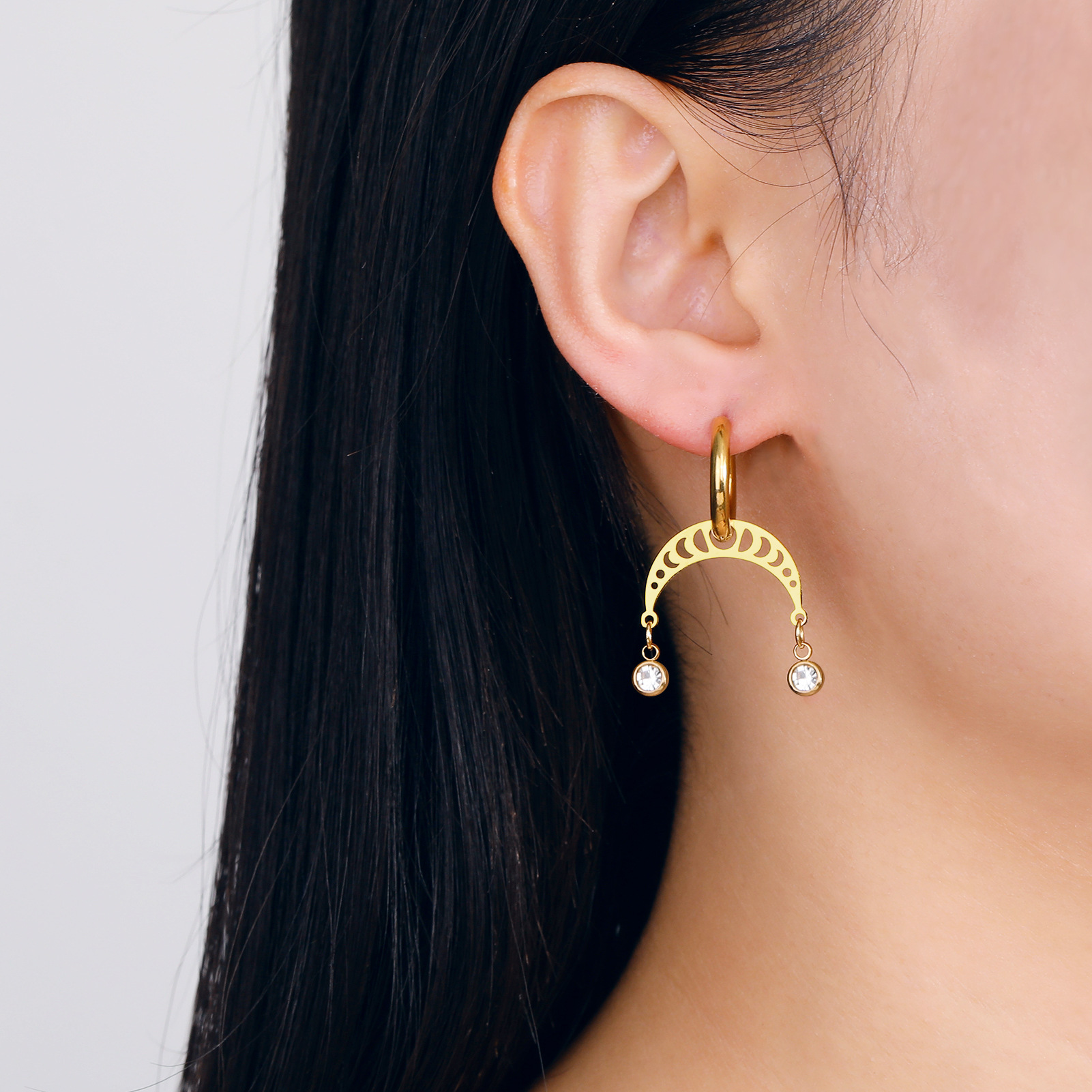 The choice of electroplating treatment in steel and gold finishes enhances their visual appeal while providing a layer of protection against wear and tear. This combination of materials and design makes these earrings a standout accessory that can be worn with confidence. Customers looking for jewelry that balances contemporary trends with lasting quality will find these earrings to be an exceptional choice, as they offer both fashion and reliability.