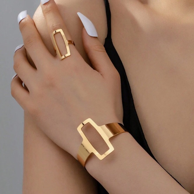 The Stylish Geometric Bracelet and Ring Set for Women is a versatile accessory that can enhance a wide range of outfits and occasions. This set is suitable for casual outings, formal events, and everything in between, making it an essential addition to any jewelry collection. The design features popular geometric shapes such as octagons and quadrangles, which lend a contemporary yet retro vibe, appealing to fashion enthusiasts who appreciate unique styles.