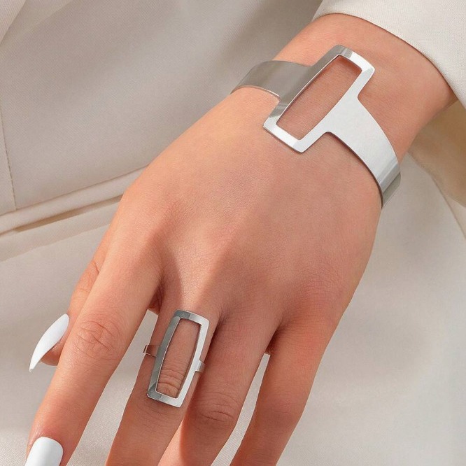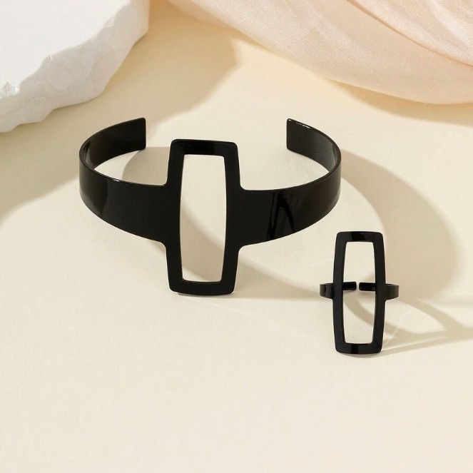 This bracelet and ring set stands out in the crowded jewelry market due to its unique design and thoughtful craftsmanship. The geometric elements not only add a modern touch but also provide a distinctive aesthetic that captures attention and invites compliments. One of the key benefits of this set is its ability to elevate any ensemble, transforming a simple look into something special.