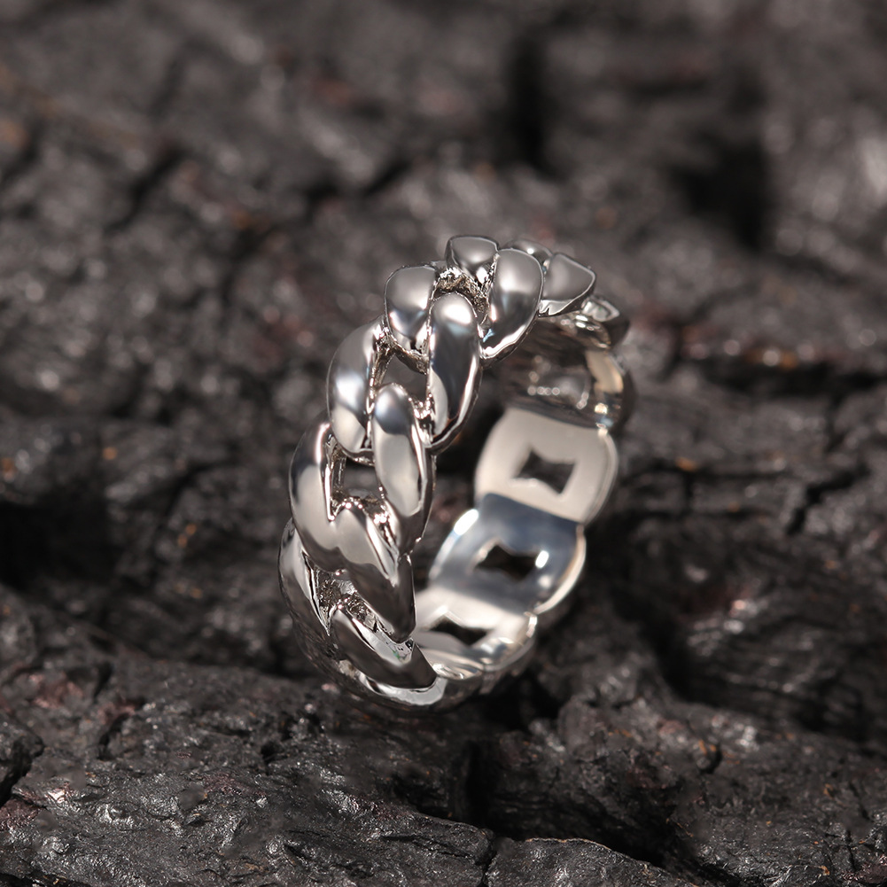 The Stylish Glossy Cuban Link Chain Ring is a versatile accessory perfect for various applications, primarily aimed at couples interested in expressing their unique hip-hop style. This ring can be worn in a multitude of settings, making it an ideal choice for both casual outings and special occasions. Whether you are attending a music concert, a fashion event, or simply hanging out with friends, this ring enhances your look and showcases your personality. Its unisex design ensures that it appeals to a broad audience, allowing couples to coordinate their styles effortlessly. The geometric shape and prominent lines of the ring add a modern touch, making it suitable for fashion-forward individuals who appreciate contemporary aesthetics.