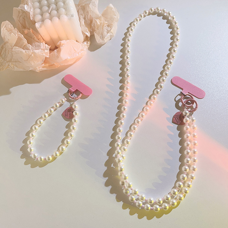 Stylish Love Hanging Pearl Crossbody Chain Wristband – Universal Mobile Phone Lanyard Strap