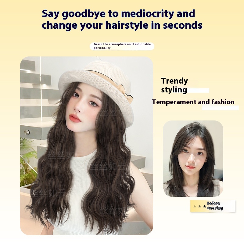 Stylish Summer Hat Wig for Women – Long Hair Fashion Accessory