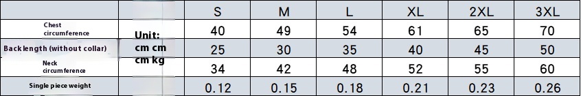 - 3XL (chest circumference ~ 70 weight ~ 40kg)