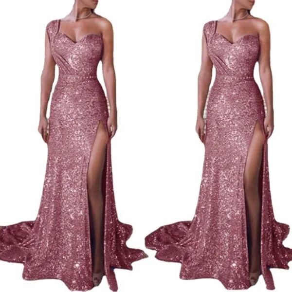 Introducing the Stylish Women’s One-Shoulder Sleeveless Bronzing Split Dress, a versatile piece that perfectly aligns with a wide range of application scenarios. This dress is designed for various occasions, making it an ideal choice for both casual outings and formal events. Whether you are attending an elegant cocktail party, a wedding, or a sophisticated dinner, this dress enhances your presence with its chic and modern silhouette. The A-line skirt flow complements different body types, while the one-shoulder design adds a touch of uniqueness and flair. Available in an array of colors including pink, red, gold, purple, black, blue, and rose gold, it allows you to express your individual style. With sizes ranging from S to 5XL, this dress caters to a broad audience, ensuring everyone can find their perfect fit.