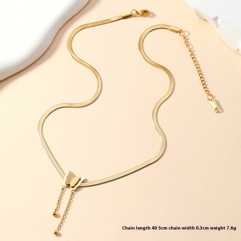 Stylish Women’s Titanium Steel Necklace with Elegant Double Butterfly Design
