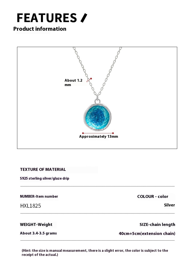 The quality of the Textured Drip Glazed Irregular Round Clavicle Necklace is evident in its materials and craftsmanship. Crafted from pure 925 sterling silver, this necklace boasts both beauty and integrity. The purity of the silver not only enhances its visual appeal but also ensures that it is hypoallergenic, making it suitable for those with sensitive skin. The attention to detail in the design, including the cross chain style and the geometric shape of the pendant, reflects a commitment to high-quality craftsmanship. Each piece undergoes rigorous quality assurance checks, ensuring that customers receive a product that meets high standards of performance and reliability. With proper care, this necklace promises longevity, allowing it to be cherished for years to come, whether as a personal treasure or a thoughtful gift.