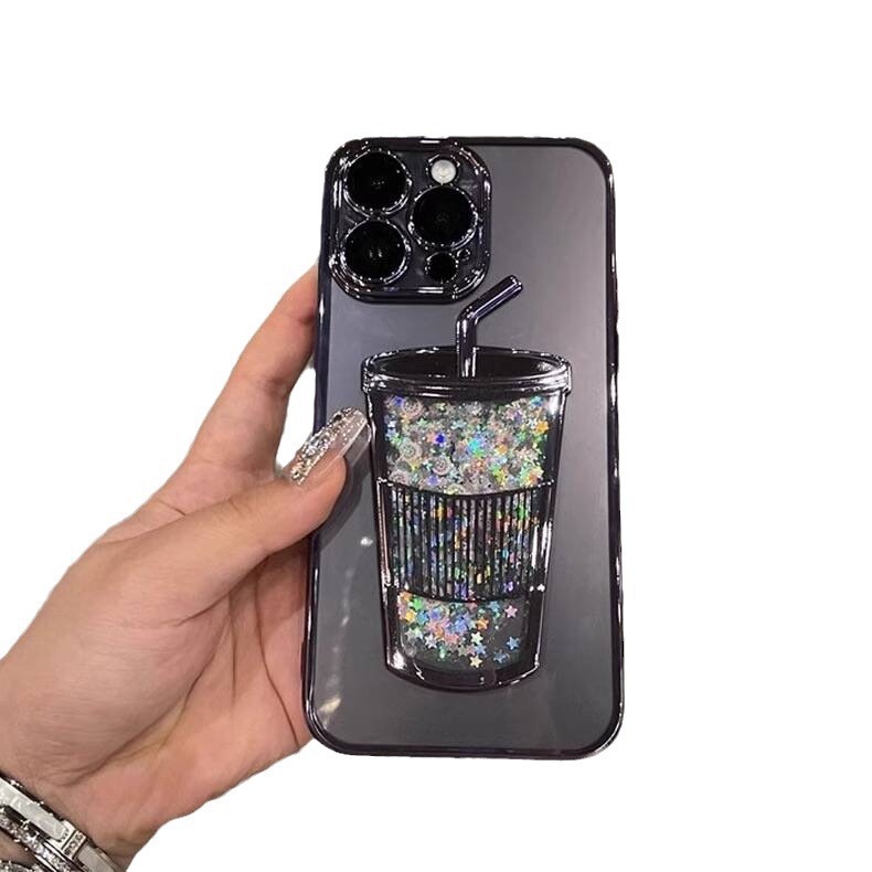 Three-Dimensional Quicksand Cup Electroplating Phone Case – Soft Shell Design