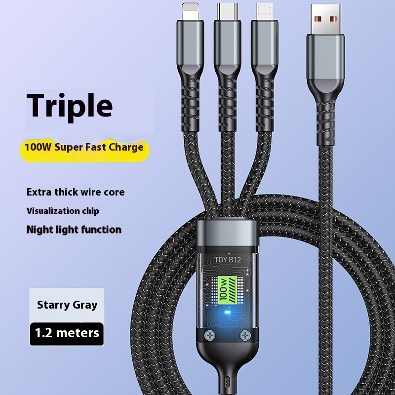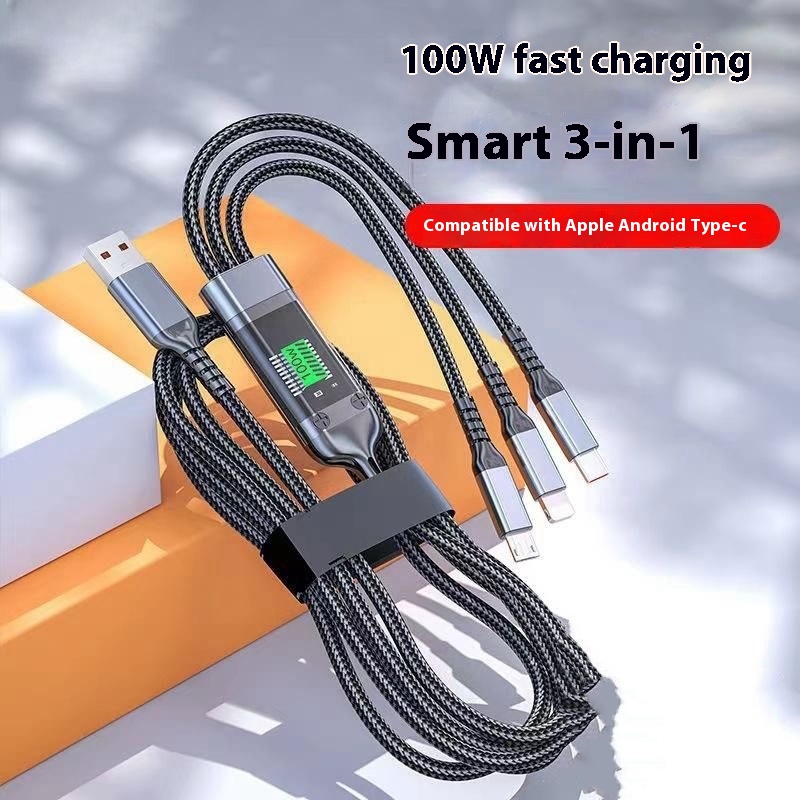 Introducing the Three-in-One Fast Charge Mobile Phone Data Cable with Digital Display and Light, an innovative solution designed for consumers who require efficient charging for multiple devices simultaneously. This versatile product is perfect for a range of applications, making it an essential accessory in various settings. Whether you are in your car, at home, or in the office, this data cable can accommodate multiple device types with its three-in-one interface, which supports Lightning, Micro USB, and Type-C connections. Its compact design allows users to manage their charging needs seamlessly, making it ideal for road trips, daily commutes, or even for use in shared spaces where multiple devices need charging at once.