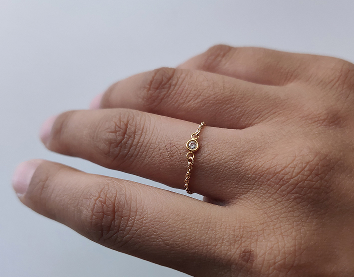The Tide-Plated 18k Rose Gold Titanium Steel Thin Chain Index Finger Ring