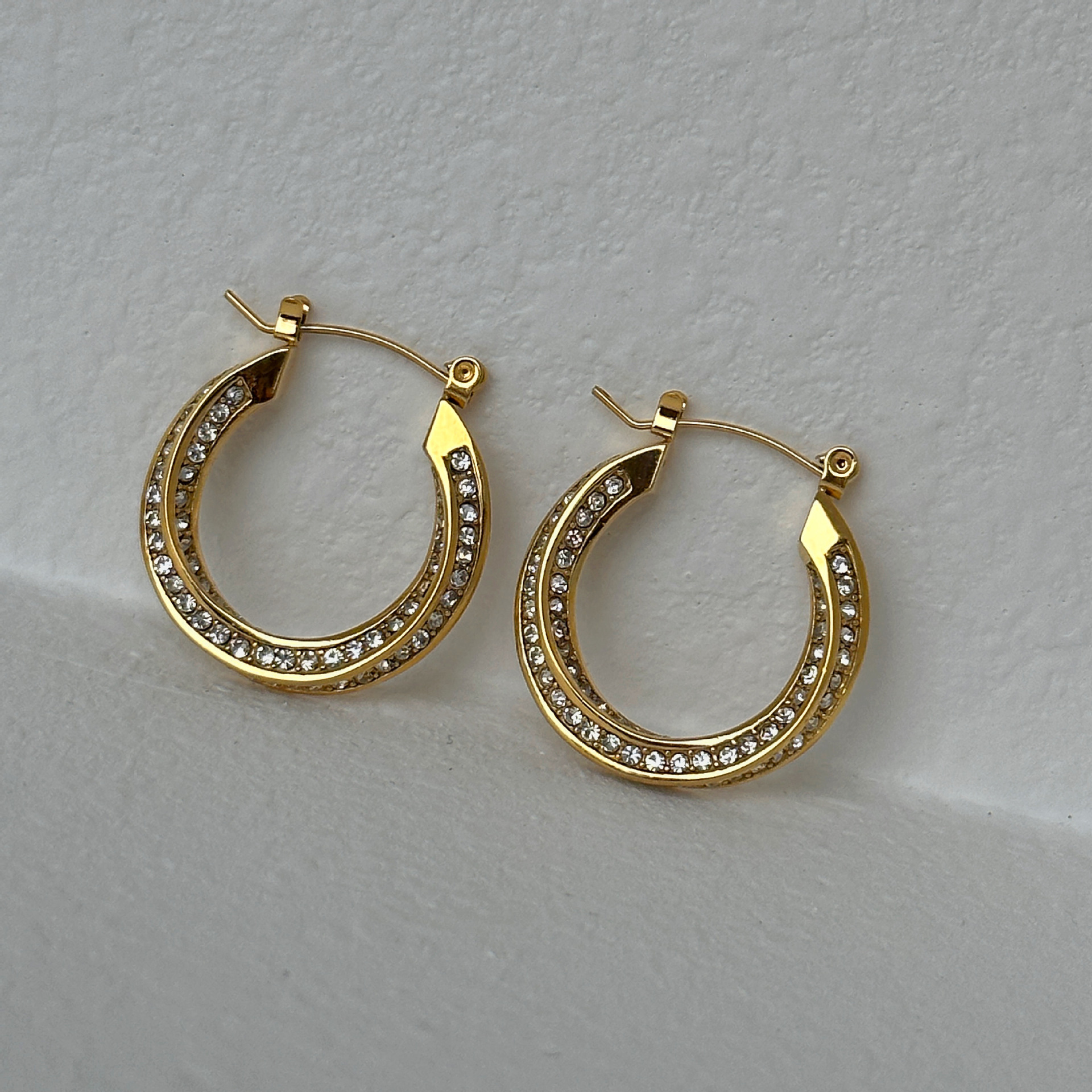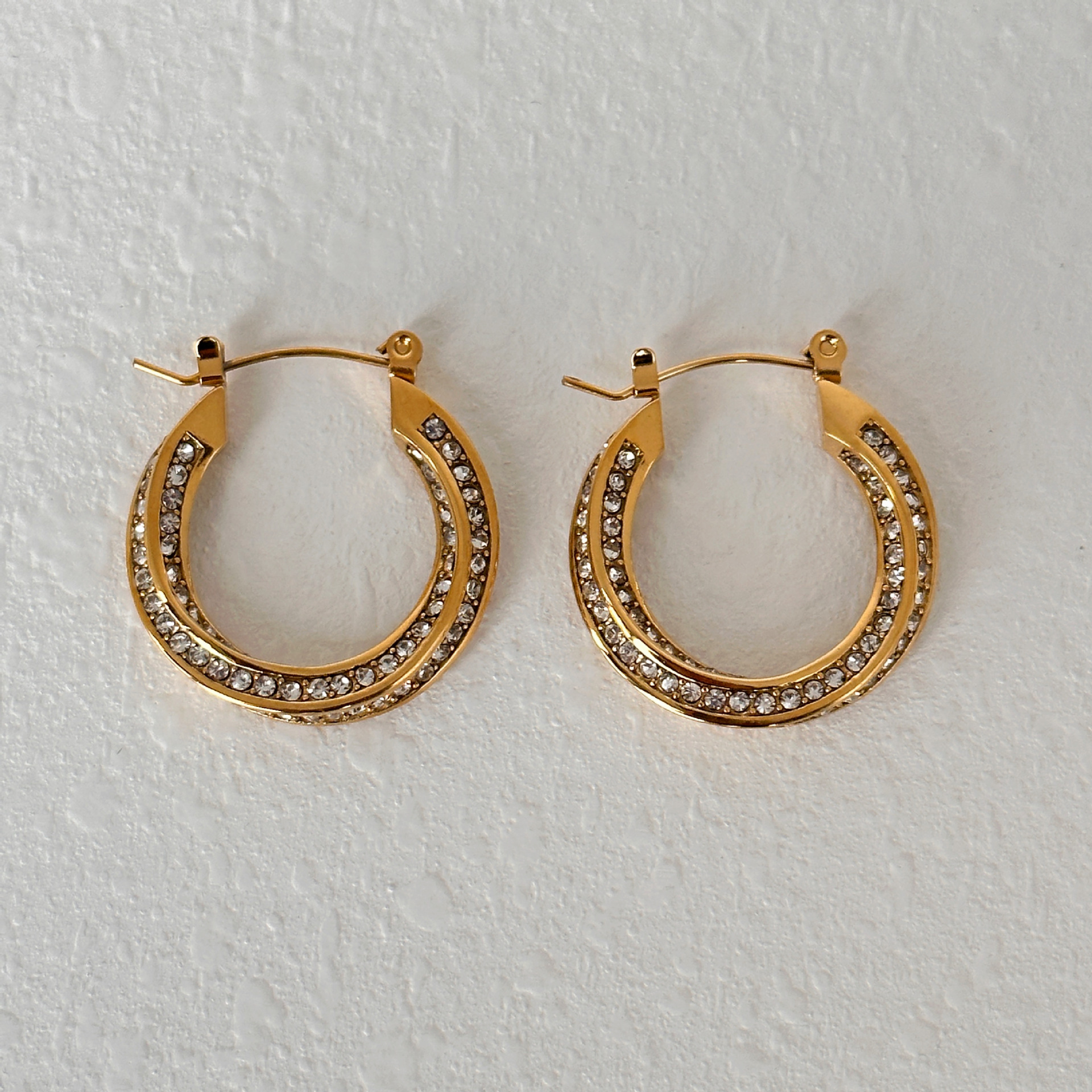 Quality is a paramount feature of the Titanium Steel Micro Inlaid Zircon Twist Large Earrings. Made from robust titanium steel, these earrings are designed to withstand everyday wear while maintaining their stunning appearance. The electroplating treatment not only enhances their visual appeal but also contributes to their resistance against tarnishing, ensuring that they retain their gold shine over time.