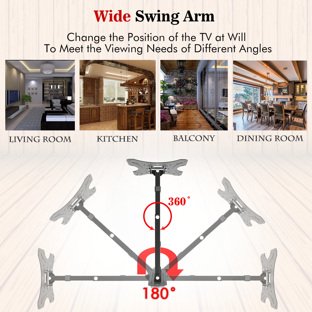 The TMX200 Wall-Mounted TV Stand is designed for versatile application across a wide range of environments, making it an ideal choice for both home and professional settings. Whether you are looking to optimize your living room space, create a functional setup in your study, or enhance the viewing experience in classrooms or meeting rooms, this adjustable TV stand is perfectly suited for various scenarios. Supporting TV sizes ranging from 26 to 50 inches, the TMX200 is particularly useful in spaces where floor area is limited. Its ability to tilt between -5 to 12 degrees and rotate up to 180 degrees allows users to customize their viewing angles, enhancing comfort and accessibility. This flexibility ensures that you can enjoy your favorite shows while engaging in other activities, such as yoga or playing games, without the hassle of moving furniture or compromising on view quality.
