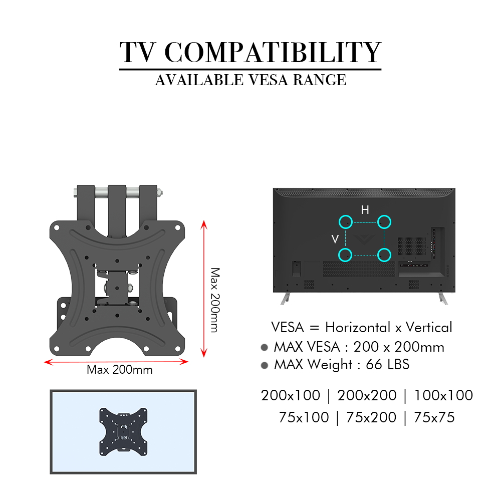 - Supportable Display Size: (26-50)” / (111-62)cm
