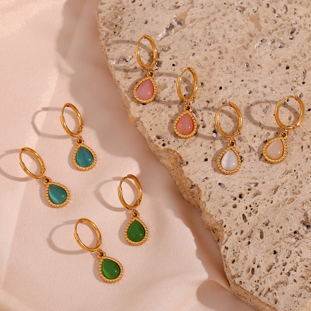 The Trendy European & American Minimalist Water Drop Opal Earrings and Stainless Steel Plated Necklace offer numerous advantages that set them apart from other jewelry options. One of their key selling points is the unique water drop design, which adds a touch of sophistication and modernity to any look. The earrings and necklace are available in a range of vibrant colors, including blue, green, pink, and white, allowing customers to select shades that best match their outfits or personal preferences. The use of high-quality titanium steel for the pendant ensures durability and resistance to tarnish, while the stainless steel chain provides strength and reliability. This jewelry set is not only fashionable but also practical, making it an ideal choice for customers seeking quality and style in one package. The combination of minimalist design and vibrant colors makes these pieces stand out, providing a perfect blend of elegance and trendiness for any occasion.
