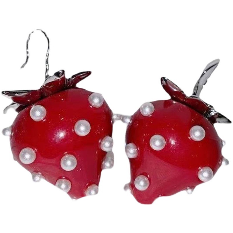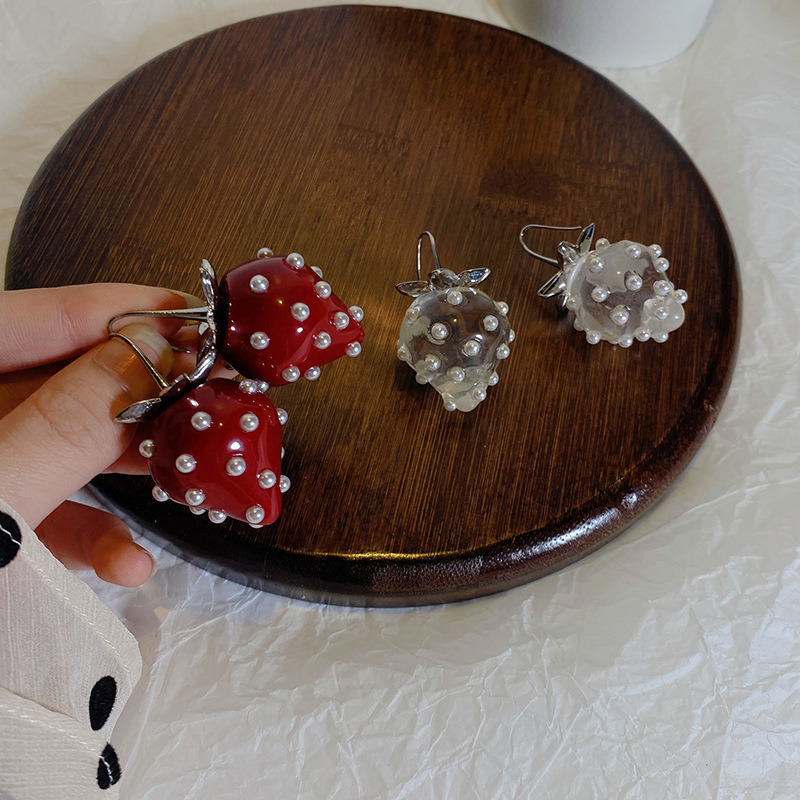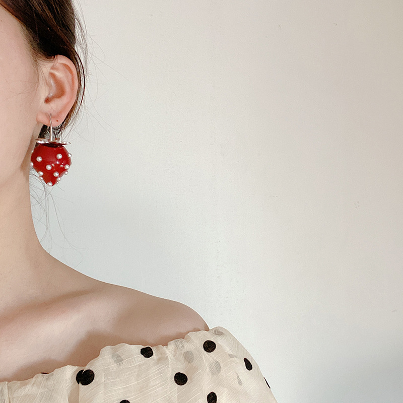 The Trendy Exaggerated Face Small Tea Series Red Strawberry Pearl Resin Earrings are a unique accessory designed to enhance a variety of fashion styles and occasions. These earrings are perfect for casual outings, parties, or even an elegant dinner, making them suitable for diverse social settings. Their eye-catching strawberry design adds a playful yet sophisticated touch to any outfit, making them a popular choice among fashion-forward individuals. With their vibrant red color and transparent elements, these earrings can easily complement both monochromatic and colorful ensembles. They are particularly appealing to those who appreciate Korean fashion trends, as they embody a youthful and trendy aesthetic that is highly sought after in contemporary style.