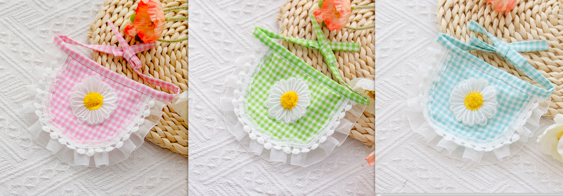 The Trendy Voile Pet’s Saliva Towel is a stylish and functional accessory designed specifically for pet owners who want to maintain cleanliness while also adding an aesthetic touch to their pet care routine. This product is ideal for various application scenarios, including homes, pet grooming salons, and veterinary clinics. Pet owners can utilize this towel during feeding time to quickly wipe away excess saliva, keeping both their pets and living spaces clean. Moreover, its attractive plaid pattern and appealing colors—semicircle-Daisy pink, semicircle-Daisy green, and semicircle-Daisy green-blue—make it a delightful addition to any pet care setup. Whether you’re at home, on a road trip with your furry friend, or visiting a groomer, the Trendy Voile Pet’s Saliva Towel proves to be versatile and suitable across different contexts, ensuring that pets remain comfortable and their surroundings stay tidy.