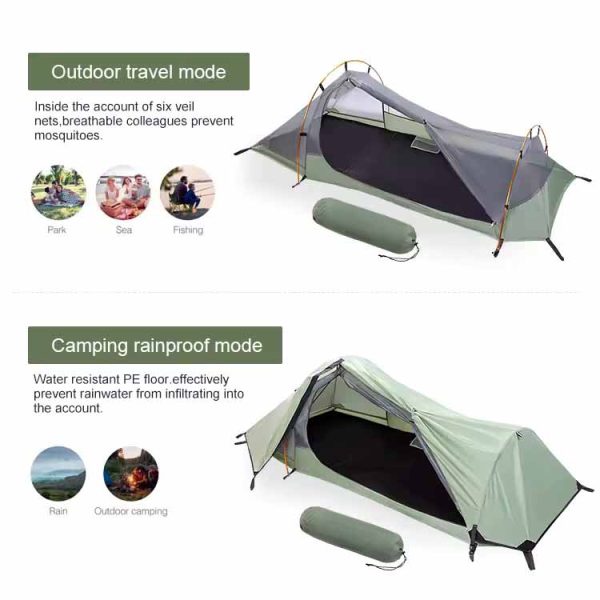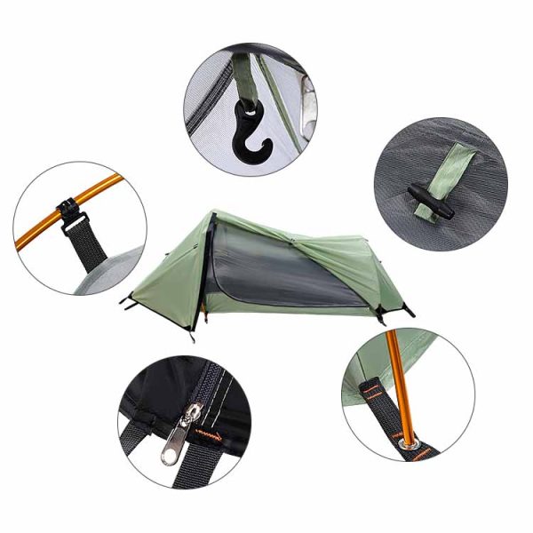 What sets the Ultralight Bivy Sack Tunnel Tent apart is its impressive combination of features and benefits tailored to meet the needs of outdoor enthusiasts. The tent’s waterproof rating of PU2000-3000mm ensures that you remain dry and comfortable even in wet conditions, while the durable 190T polyester fabric provides exceptional resistance to wear and tear. The use of aluminum poles not only contributes to the tent’s lightweight nature but also enhances its structural integrity, allowing it to withstand varying weather conditions. Furthermore, the customizable options for color and branding provide an opportunity for users to personalize their tent, making it not just a practical choice but also a reflection of individual style. Customers seeking a reliable and efficient shelter will find that this tent offers a perfect blend of functionality and aesthetics, making it an attractive alternative to heavier and bulkier shelters on the market.
