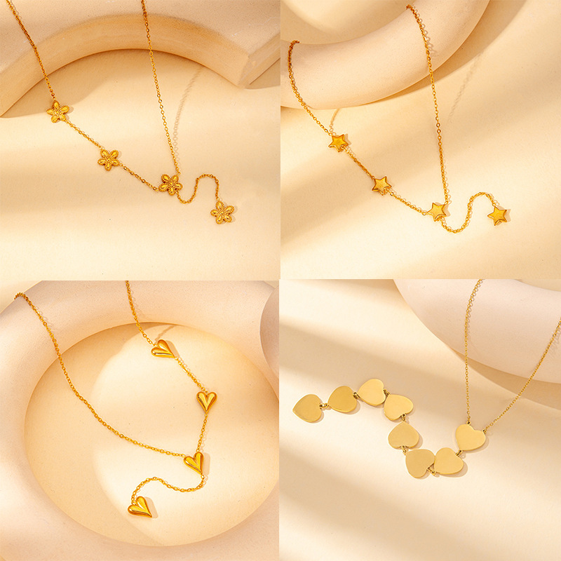 What sets the Vibrant Candy Love Heart Color Gem Necklace apart from other jewelry options is its unique blend of creativity and elegance. The use of vibrant colors and playful designs, such as the heart-shaped gems and flower motifs, captures attention while maintaining a sophisticated allure. Made from durable titanium steel, this necklace not only boasts aesthetic appeal but also provides a reliable and long-lasting accessory. The electroplating treatment process enhances its shine and finish, ensuring that it remains eye-catching without compromising on quality. Customers seeking a distinctive piece of jewelry that combines fun and sophistication will find this necklace an ideal choice, as it stands out in a crowded market of ordinary accessories.