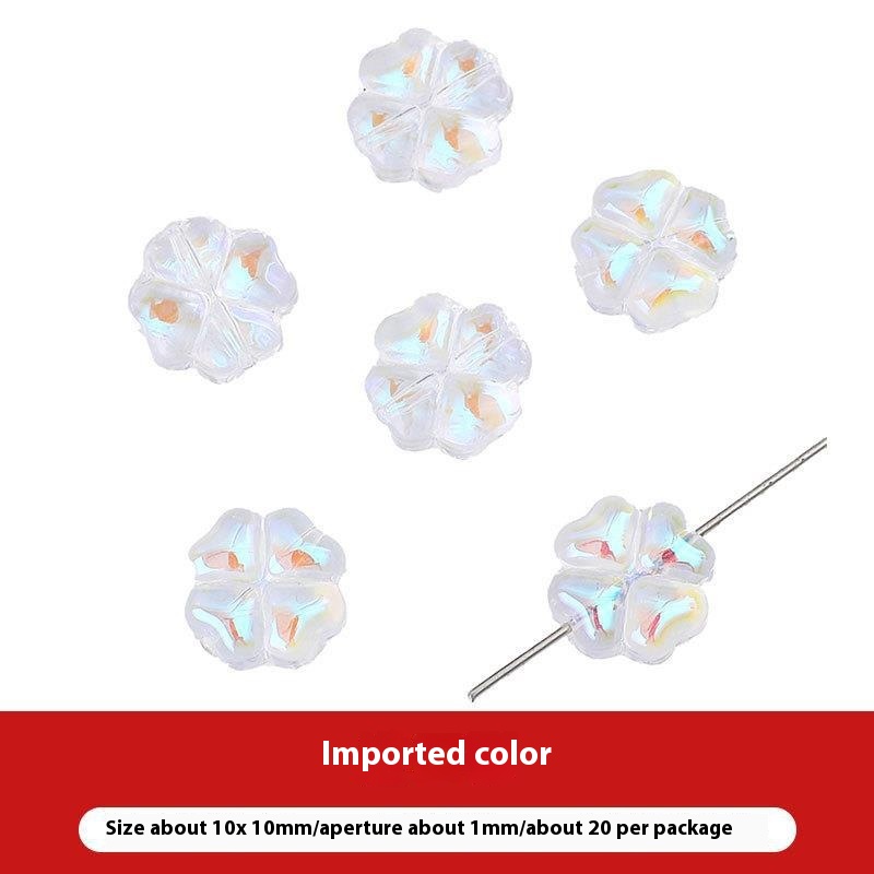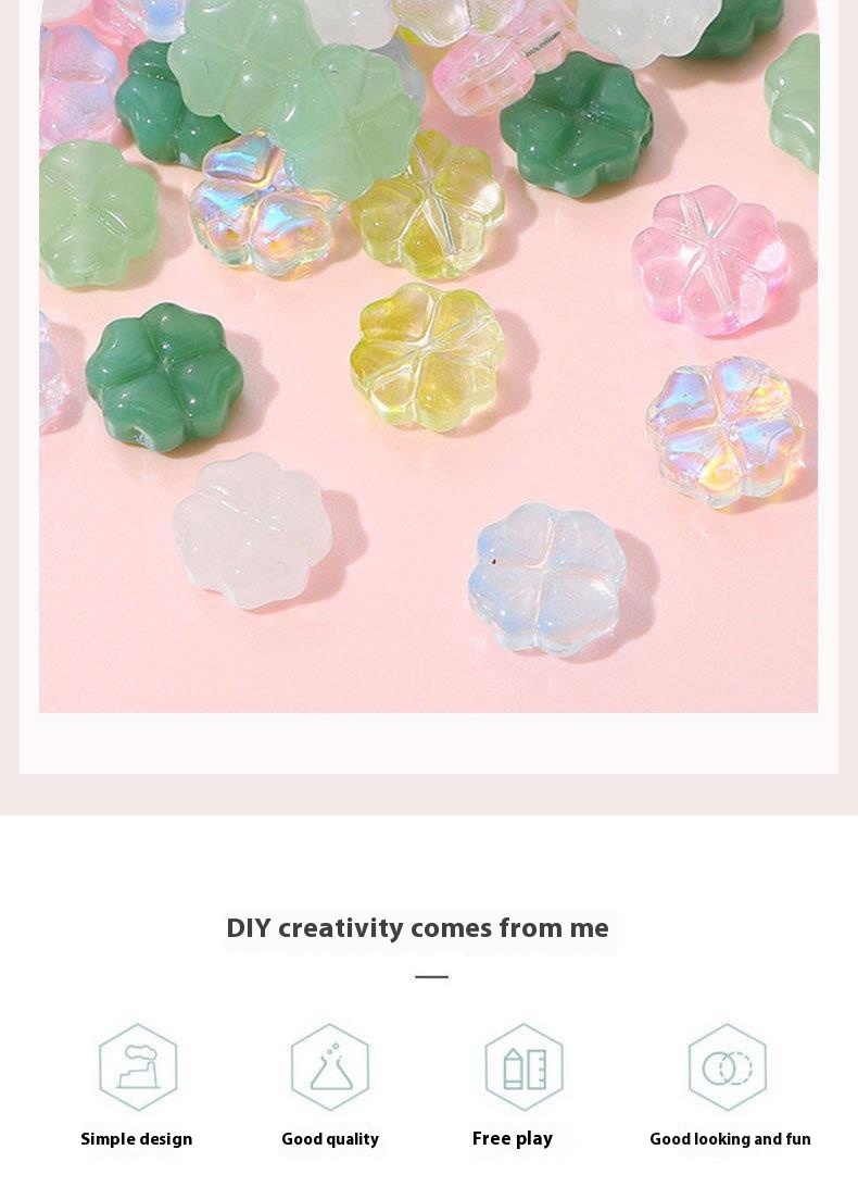 The advantages of the Vibrant Colorful Glass Four-leaf Flower Flat Beads are numerous and compelling. One significant selling point is their attractive design, which adds a touch of whimsy and charm to any accessory. The electroplating treatment process enhances the colors, giving the beads a vibrant appearance that is sure to catch the eye and draw attention.