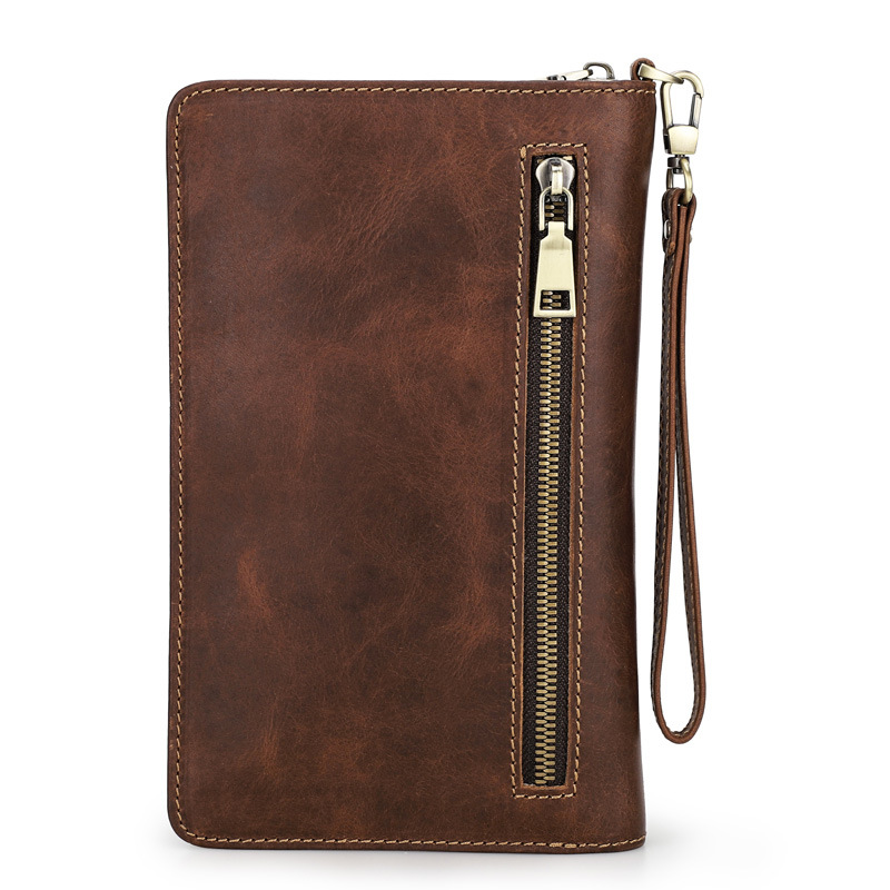 Vintage Crazy Horse Cowhide Business Casual Clutch for Stylish Professionals