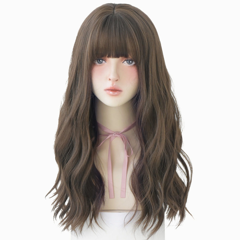 Wig hairstyle: long curly hair with bangs